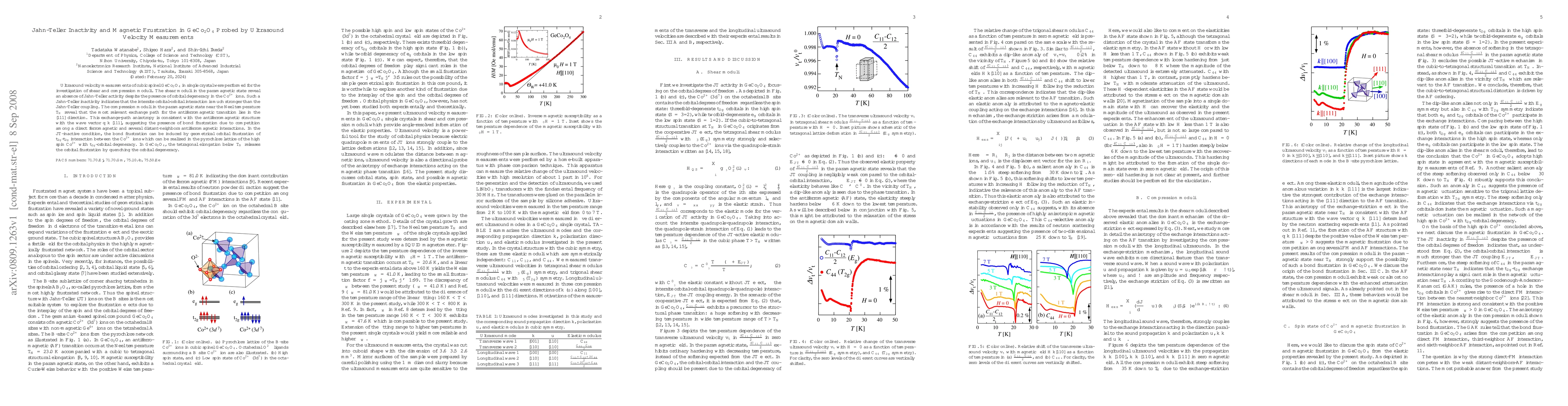 This study investigates GeCo$_2$O$_4$ using ultrasound velocity measurements, revealing Jahn-Teller inactivity despite Co$^{2+}$ orbital degeneracy and suggesting strong intersite orbital interactions. The compression moduli near the Néel temperature indicate anisotropic exchange paths favoring an antiferromagnetic transition along the [111] direction, hinting at magnetic frustration due to competing interactions.
