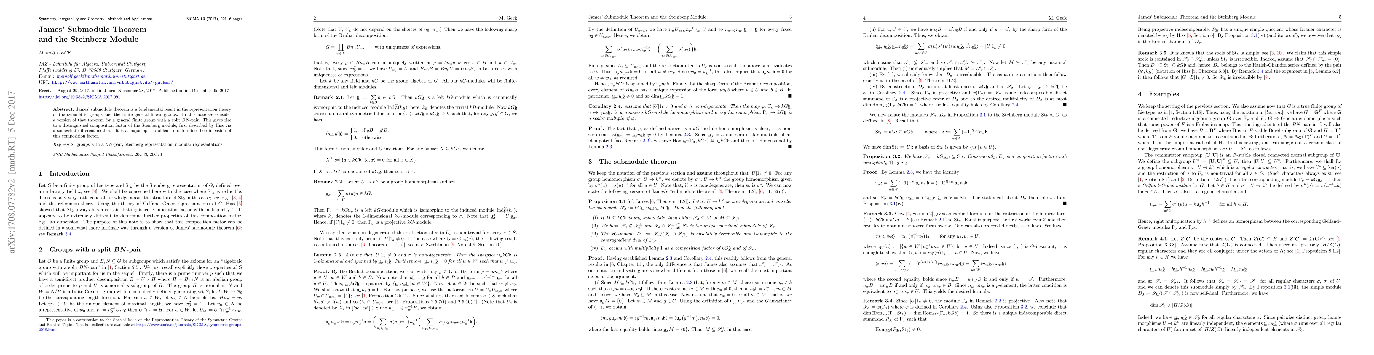 James' submodule theorem is extended to finite groups with a split BN-pair, leading to a distinguished composition factor in the Steinberg module. This composition factor's dimension remains an open problem.