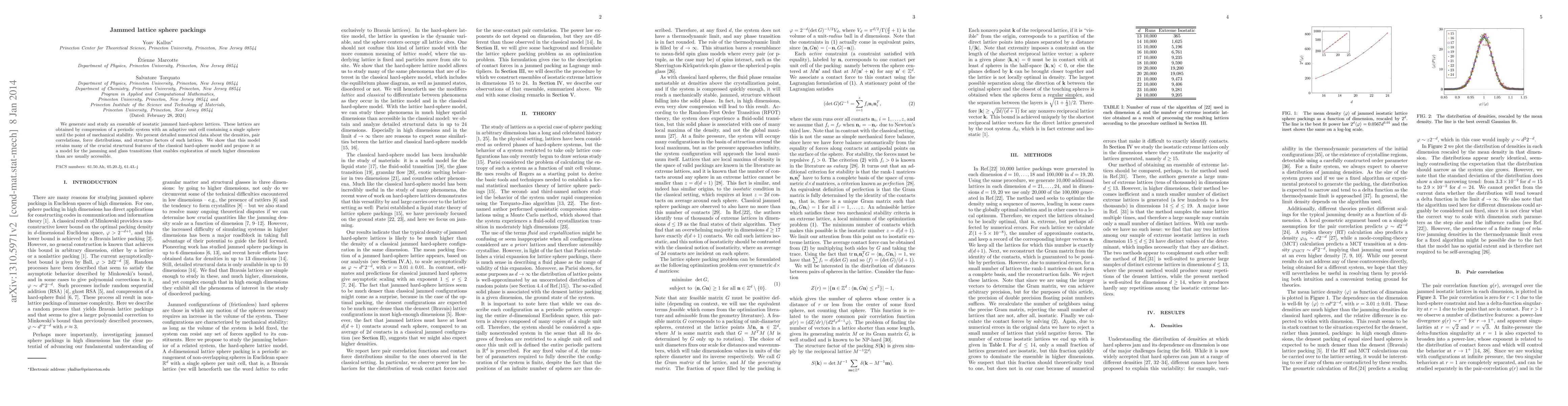 Researchers created a model of jammed hard-sphere lattices that retain structural features from classical hard-sphere models, enabling exploration of high dimensions for understanding jamming and glass transitions.