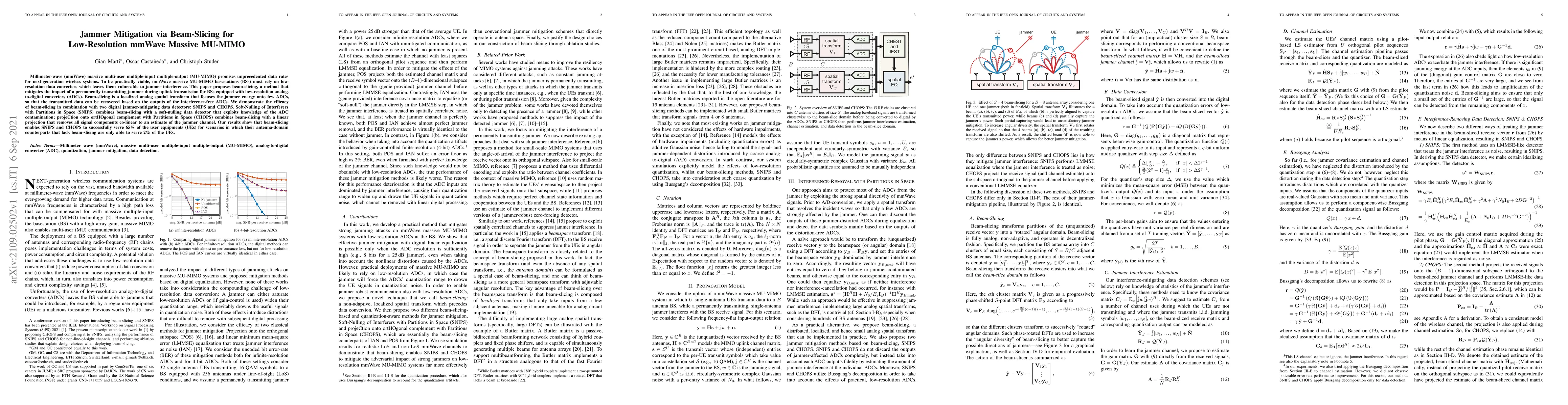 This paper proposes a beam-slicing technique to mitigate jammer interference in low-resolution mmWave massive MU-MIMO systems. It combines beam-slicing with SNIPS and CHOPS data detectors to recover transmitted data, successfully serving 65% of UEs compared to 2% without beam-slicing.