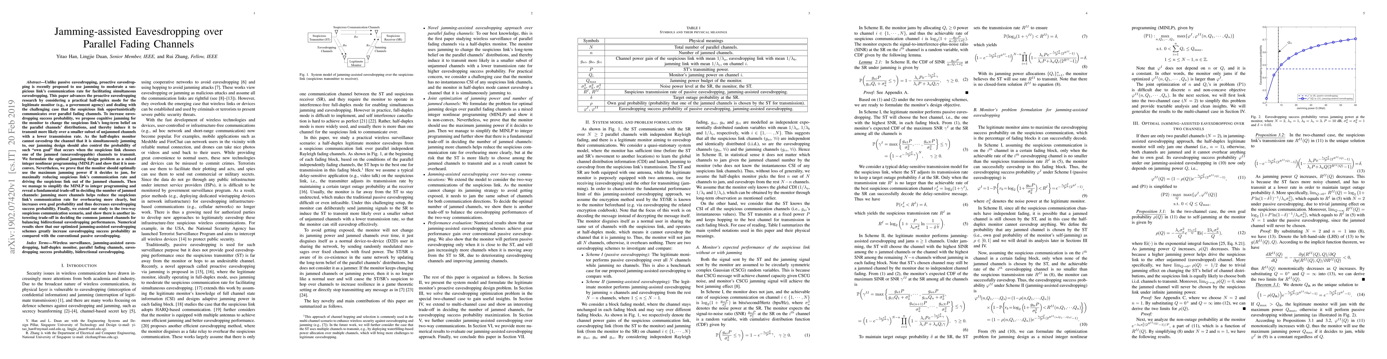 This paper proposes a jamming-assisted eavesdropping method for half-duplex monitors over parallel fading channels, aiming to increase eavesdropping success by inducing the suspicious link to transmit over fewer channels. The optimal jamming strategy balances reducing the suspicious link's communication rate against the risk of jamming uneavesdroppable channels, demonstrating significant improvements over passive eavesdropping.