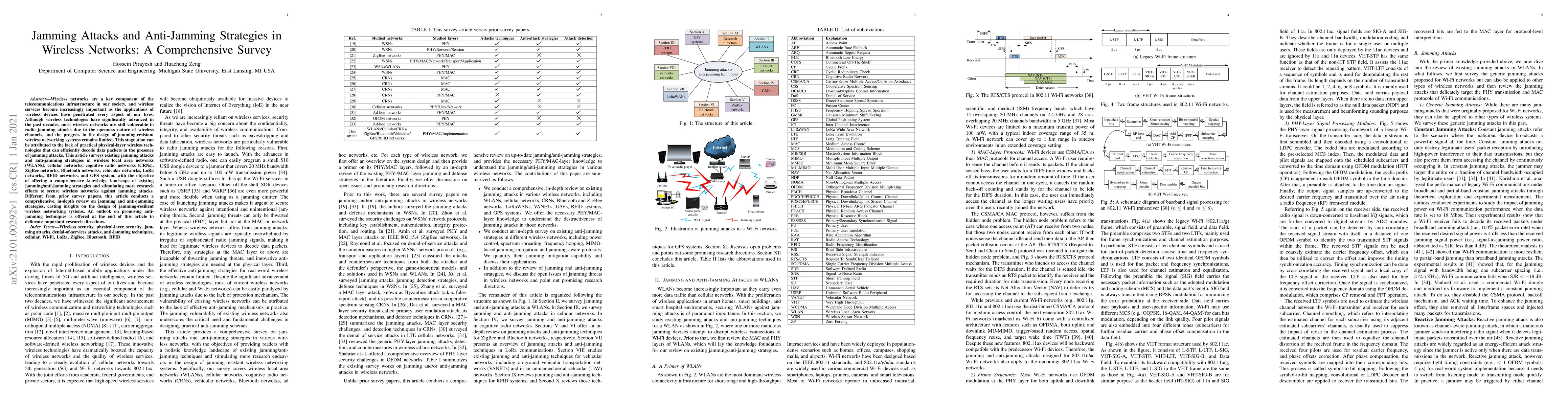 This paper provides a comprehensive survey of jamming attacks and anti-jamming strategies across various wireless networks, highlighting the vulnerabilities and current limitations in securing wireless communications against jamming. It aims to stimulate further research by offering insights into the design of resilient systems and outlines promising future directions.