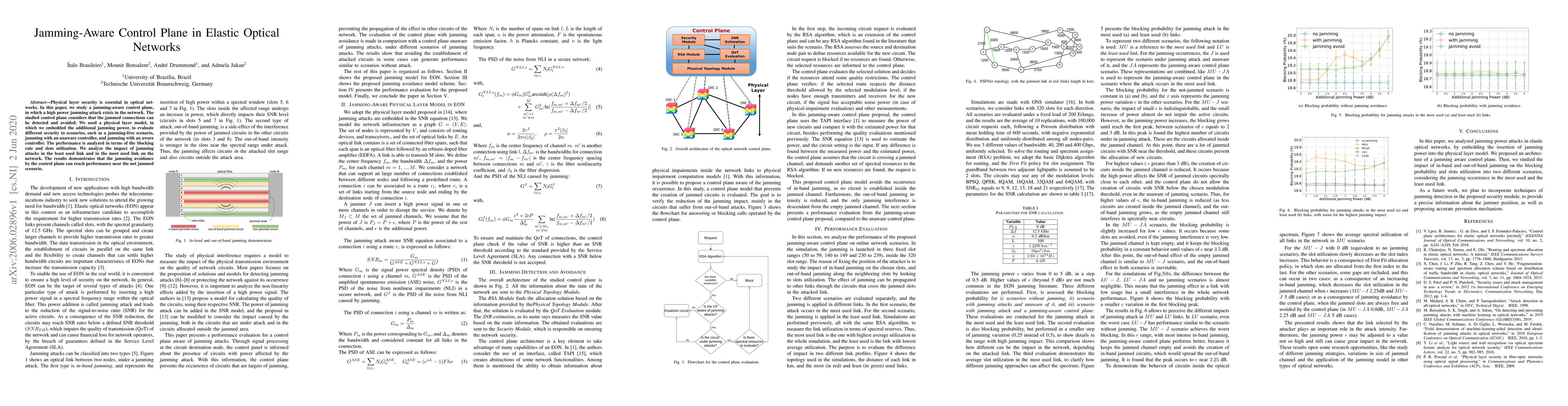 This paper investigates a jamming-aware control plane for elastic optical networks, evaluating its performance against jamming attacks. The study shows that the control plane can effectively avoid jammed connections, achieving performance close to that of a jamming-free scenario, despite the presence of jamming attacks.