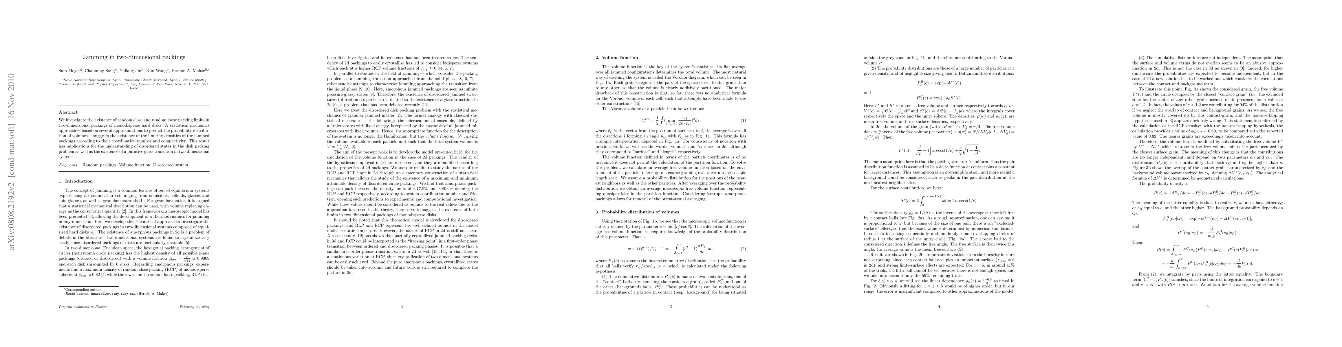 Researchers found random close and loose packing limits in 2D monodisperse hard disk packings using a statistical mechanics approach, with implications for understanding disordered states and glass transitions.