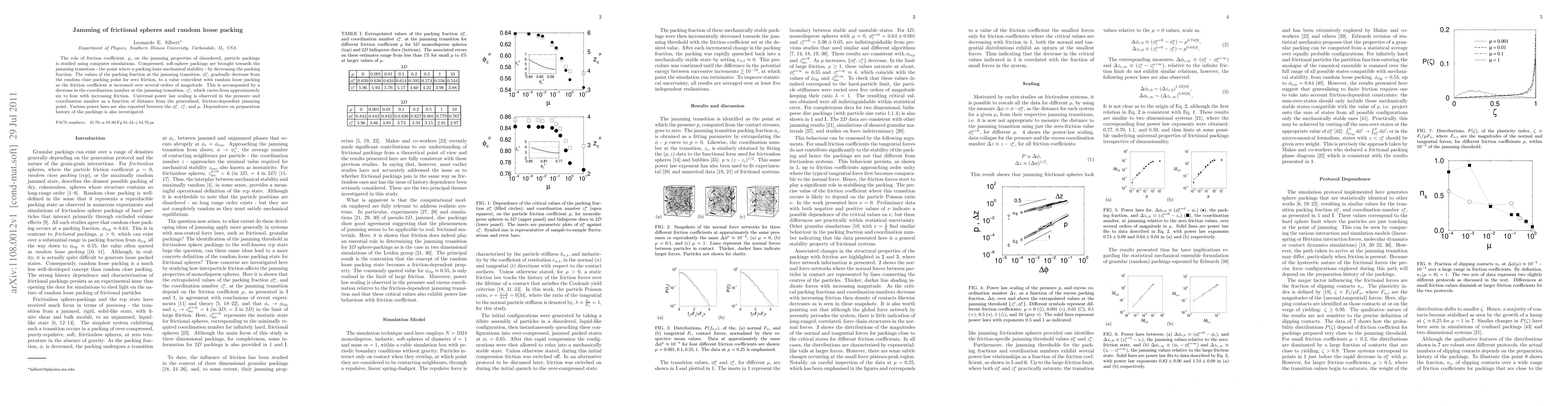 The paper presents a detailed analysis of how friction coefficient influences the jamming transition in particle packings, identifying power-law relationships and universal scaling behaviors.