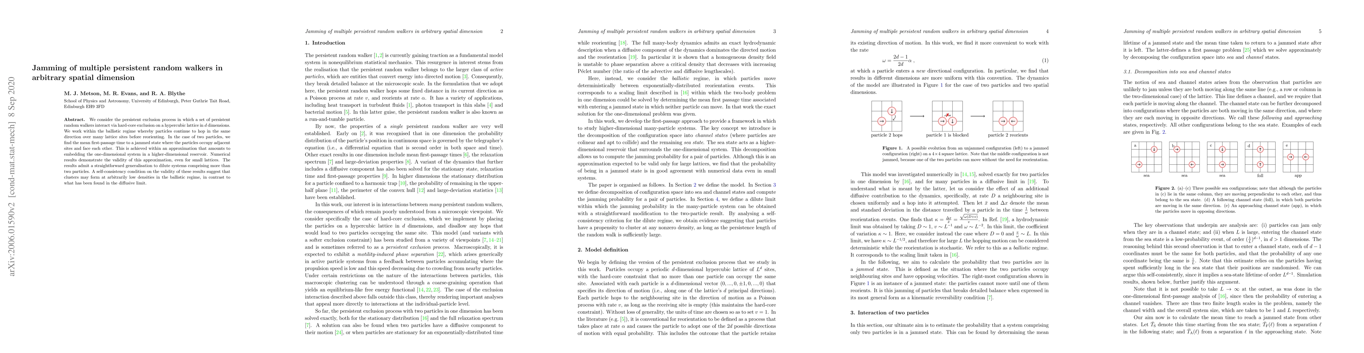 Researchers studied how multiple particles interact on a lattice in various dimensions, finding that they can jam (get stuck) together even in the ballistic regime, contradicting previous findings in lower-dimensional systems.