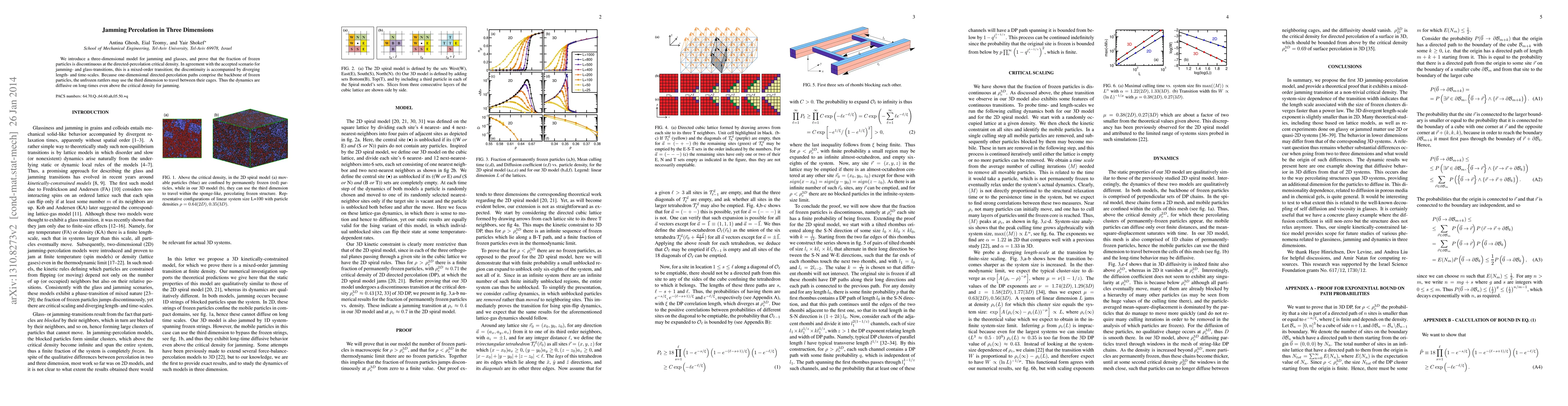 We introduce a three-dimensional model for jamming and glasses, and prove that the fraction of frozen particles is discontinuous at the directed-percolation critical density. In agreement with the accepted scenario for jamming- and glass-transitions, this is a mixed-order transition; the discontinuity is accompanied by diverging length- and time-scales. Because one-dimensional directed-percolation paths comprise the backbone of frozen particles, the unfrozen rattlers may use the third dimension to travel between their cages. Thus the dynamics are diffusive on long-times even above the critical density for jamming.