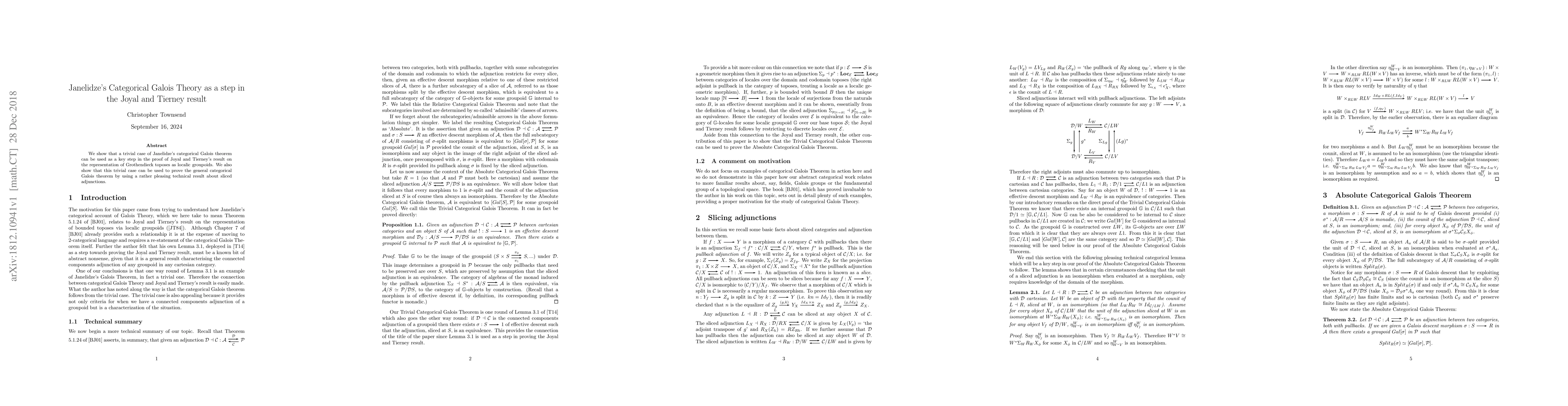 Summary: This paper demonstrates how a simplified version of Janelidze's categorical Galois theorem serves as a crucial step in proving Joyal and Tierney's result on representing Grothendieck toposes as localic groupoids, and it also illustrates how this simplified case aids in proving the full categorical Galois theorem via a technical result on sliced adjunctions.