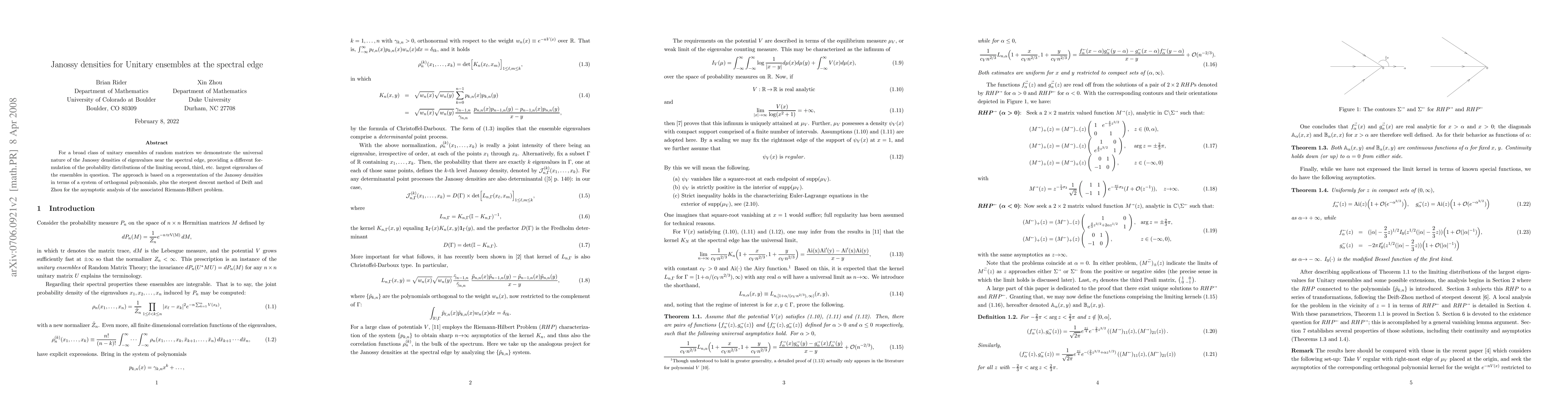 This paper demonstrates the universal nature of Janossy densities for eigenvalues near the spectral edge in unitary ensembles of random matrices, using orthogonal polynomials and the steepest descent method to analyze the associated Riemann-Hilbert problem. The findings provide a new perspective on the probability distributions of the largest eigenvalues.