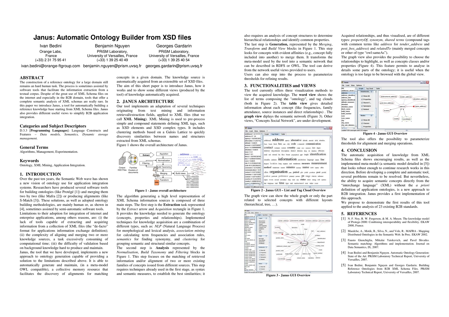 Janus is an automated tool for constructing reference knowledge bases from XML Schema (XSD) files, aiming to simplify the otherwise arduous task of ontology building. It offers a semantic analysis of XML schemas and provides useful views to facilitate B2B application integration.