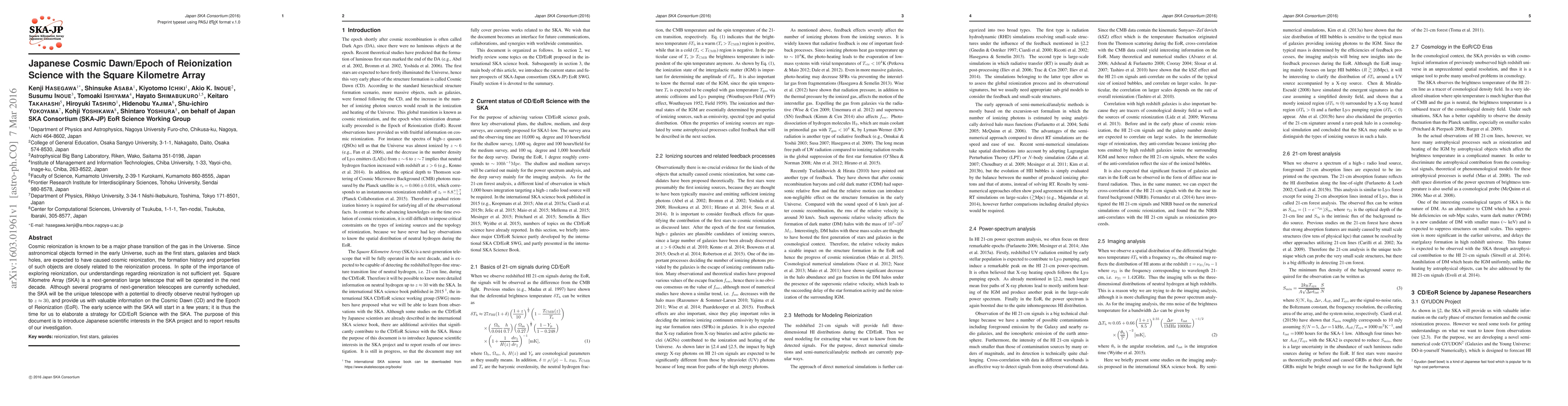 This paper discusses the potential of the Square Kilometre Array (SKA) to observe the Cosmic Dawn and Epoch of Reionization, focusing on Japan's scientific interests in the SKA project. It highlights the SKA's unique capability to directly observe neutral hydrogen up to z~30, providing crucial insights into the early Universe.