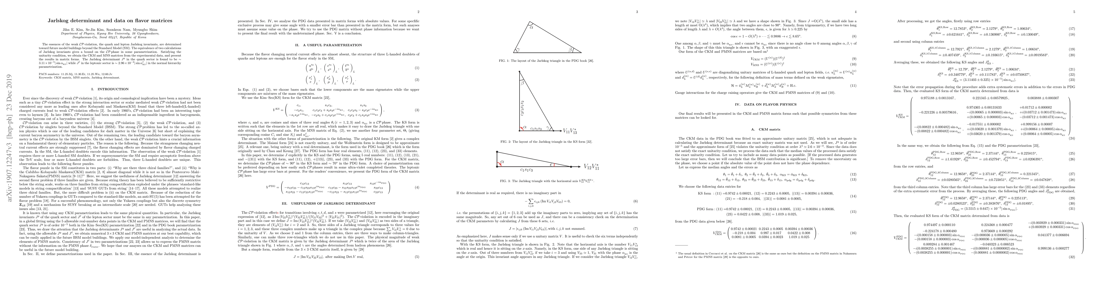 This paper investigates the Jarlskog invariants, which measure weak CP violation, and finds that the quark sector has a Jarlskog determinant $J^q \sim 3.11\times 10^{-5}|\sin\delta_{ks}|$ and the leptonic sector $J^\ell \sim 2.96\times 10^{-2}|\sin\delta_{ksl}|$, contributing to model-building beyond the Standard Model. The study also derives CKM and MNS matrices from experimental data.