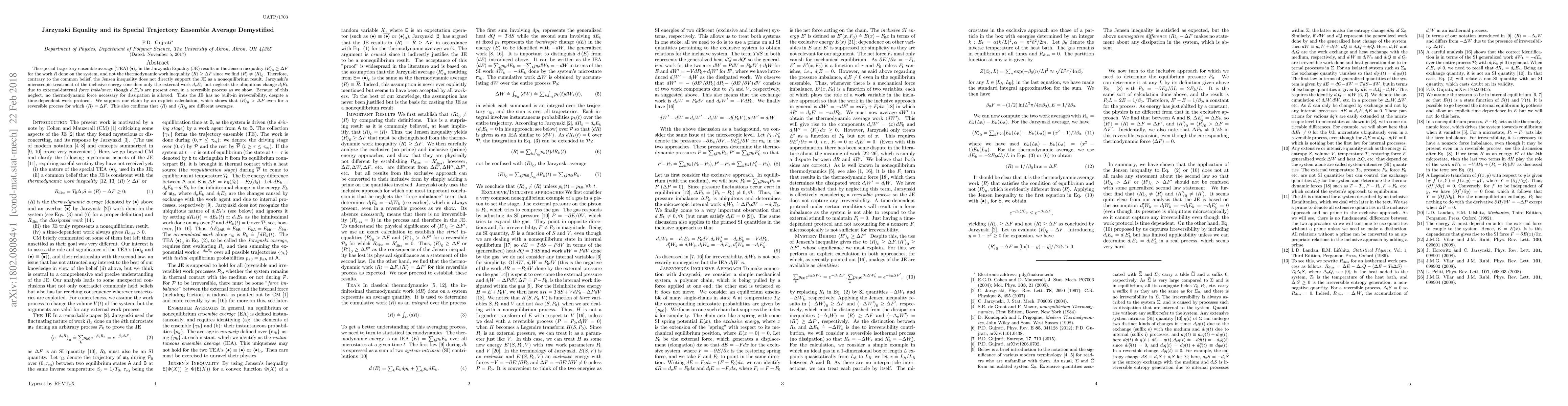 the Jarzynski Equality (JE) results in the Jensen inequality