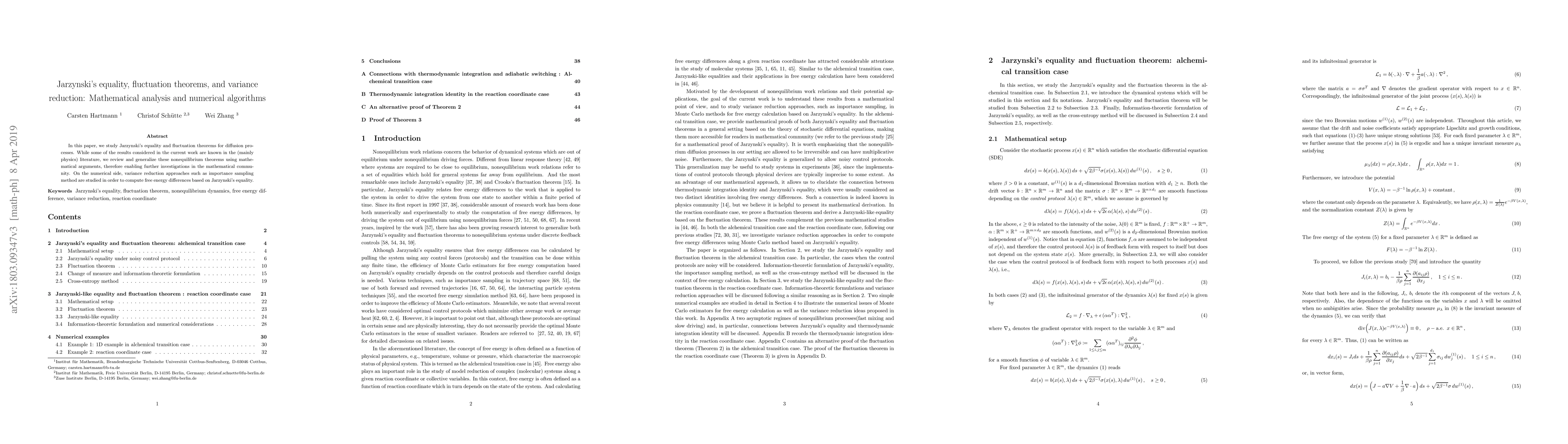 This paper reviews and generalizes Jarzynski's equality and fluctuation theorems for diffusion processes, providing mathematical insights for the mathematical community. It also explores variance reduction techniques, including importance sampling, to numerically compute free energy differences based on Jarzynski's equality.