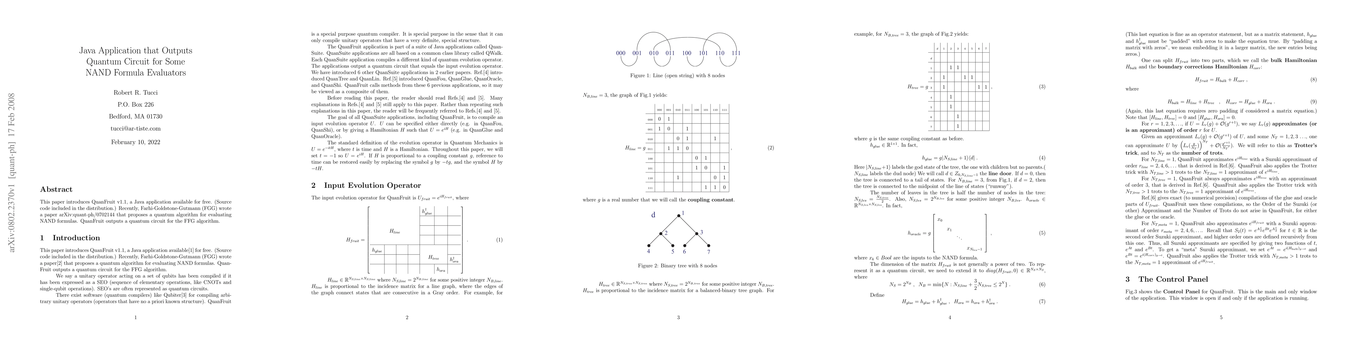 This paper introduces QuanFruit v1.1, a Java application available for free. (Source code included in the distribution.) Recently, Farhi-Goldstone-Gutmann (FGG) wrote a paper arXiv:quant-ph/0702144 that proposes a quantum algorithm for evaluating NAND formulas. QuanFruit outputs a quantum circuit for the FFG algorithm.