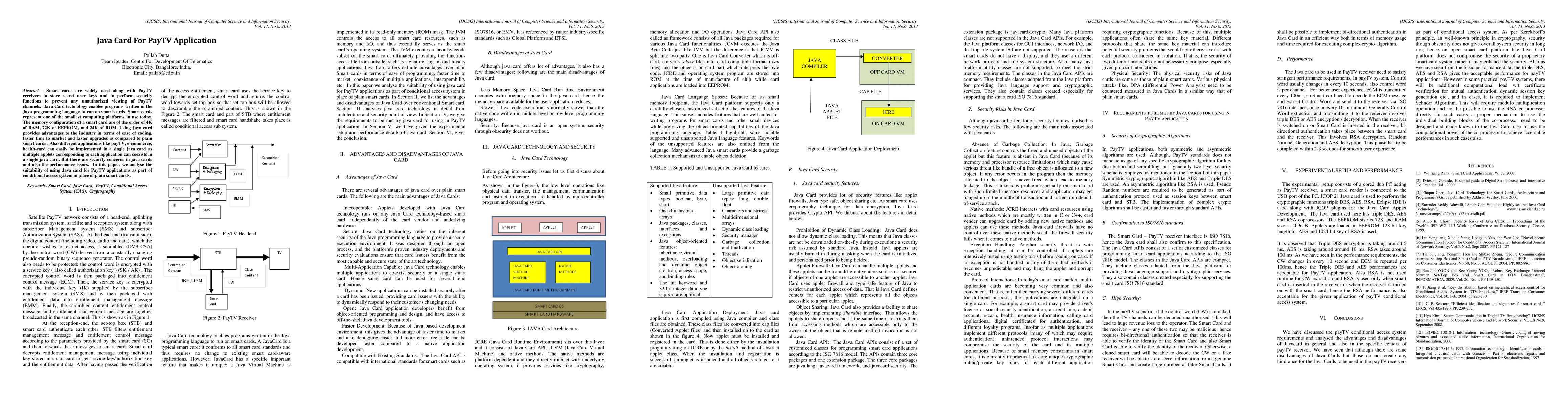 This paper evaluates the use of Java Card technology for PayTV applications in conditional access systems, highlighting advantages like ease of coding and faster upgrades, while also addressing security and performance concerns compared to traditional smart cards.