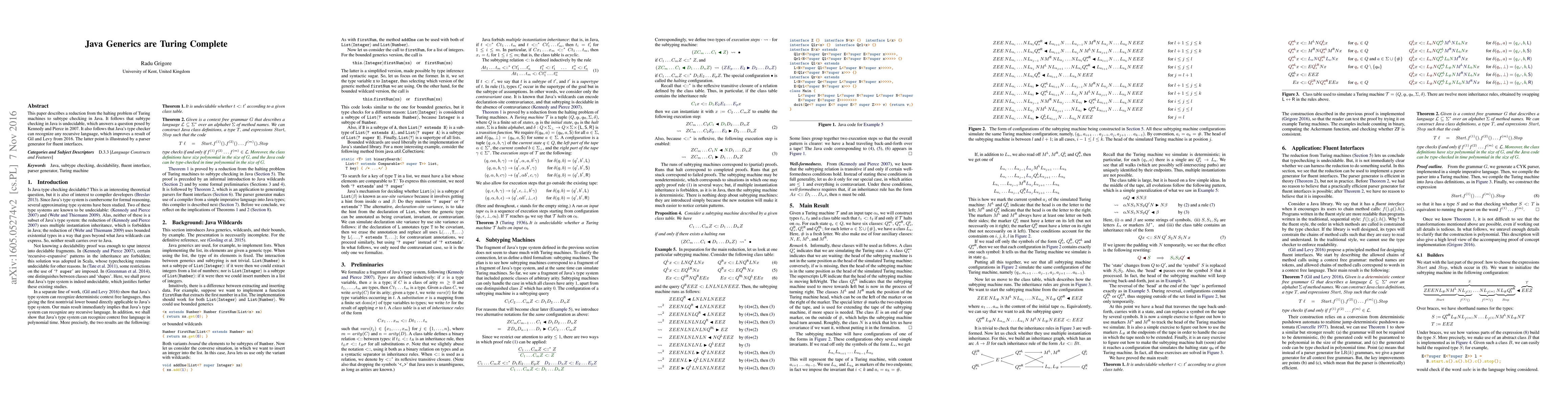 This paper demonstrates that Java's subtype checking is undecidable by reducing the halting problem to it, answering a 2007 question. It also shows that Java's type checker can recognize any recursive language, illustrated by a parser generator for fluent interfaces.