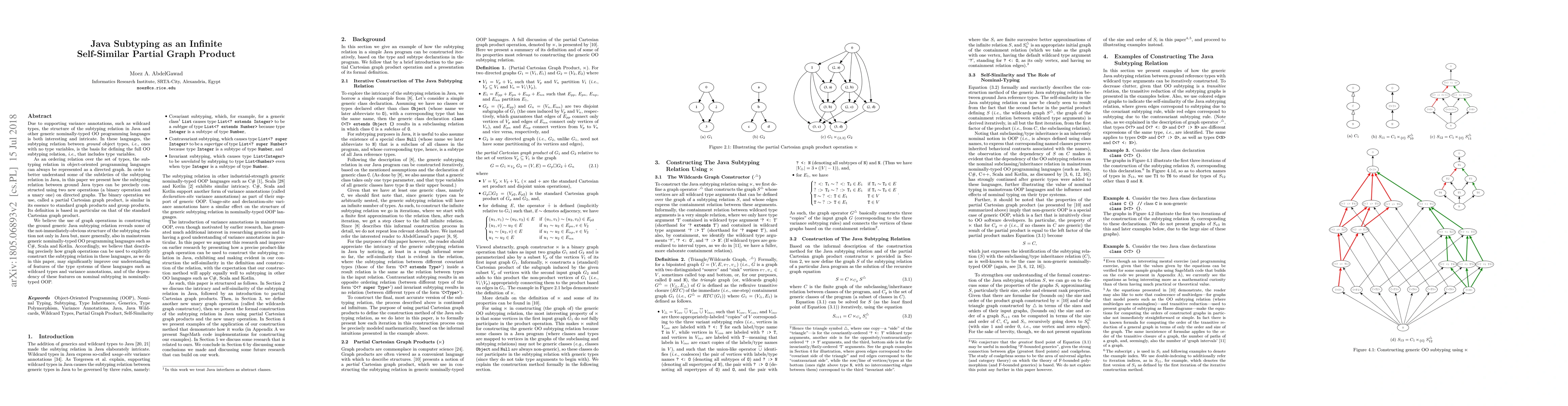 Due to supporting variance annotations, such as wildcard types, the subtyping relation in Java and other generic nominally-typed OO programming languages is both interesting and intricate. In these languages, the subtyping relation between ground object types, i.e., ones with no type variables, is the basis for defining the full OO subtyping relation, i.e., that includes type variables. As an ordering relation over the set of types, the subtyping relation in object-oriented programming languages can always be represented as a directed graph. In order to better understand some of the subtleties of the subtyping relation in Java, in this paper we present how the subtyping relation between ground Java types can be precisely constructed using two new operations (a binary operation and a unary one) on directed graphs. The binary operation we use, called a partial Cartesian graph product, is similar in its essence to standard graph products and group products. Its definition is based in particular on that of the standard Cartesian graph product. We believe the use of graph operations in constructing the ground generic Java subtyping relation reveals some of the not-immediately-obvious structure of the subtyping relation not only in Java but, more generally, also in mainstream generic nominally-typed OO programming languages such as C#, Scala and Kotlin. Accordingly, we believe that describing precisely how graph operations can be used to explicitly construct the subtyping relation in these languages, as we do in this paper, may significantly improve our understanding of features of the type systems of these languages such as wildcard types and variance annotations, and of the dependency of these features on nominal subtyping in nominally-typed OOP.