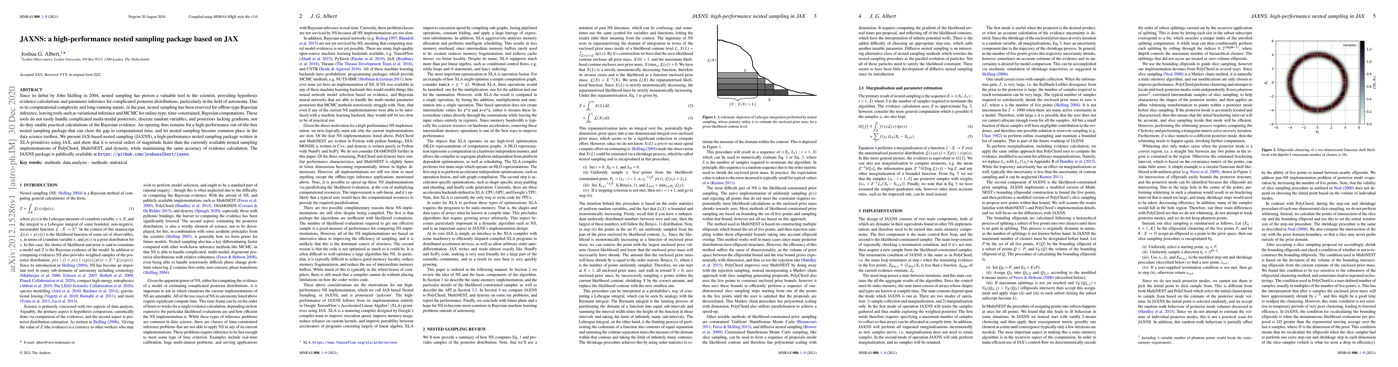 The paper introduces JAXNS, a high-performance nested sampling package based on JAX, utilizing XLA-primitives for efficient computation.