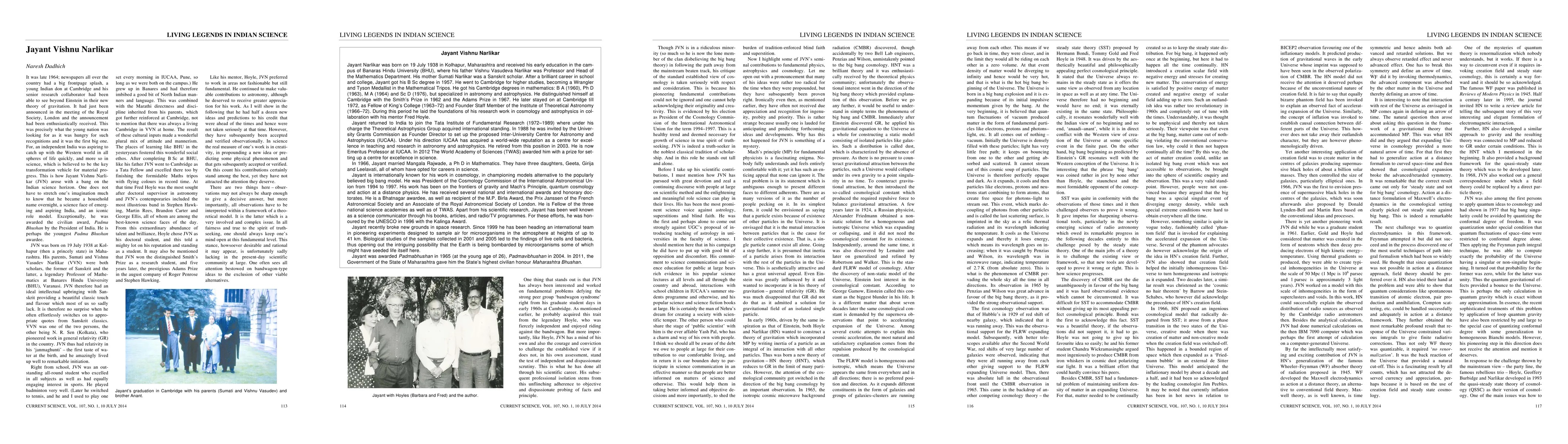 An essay on Jyant Narlikar in the Living Legends of Indian Science series of the journal Current Science.
