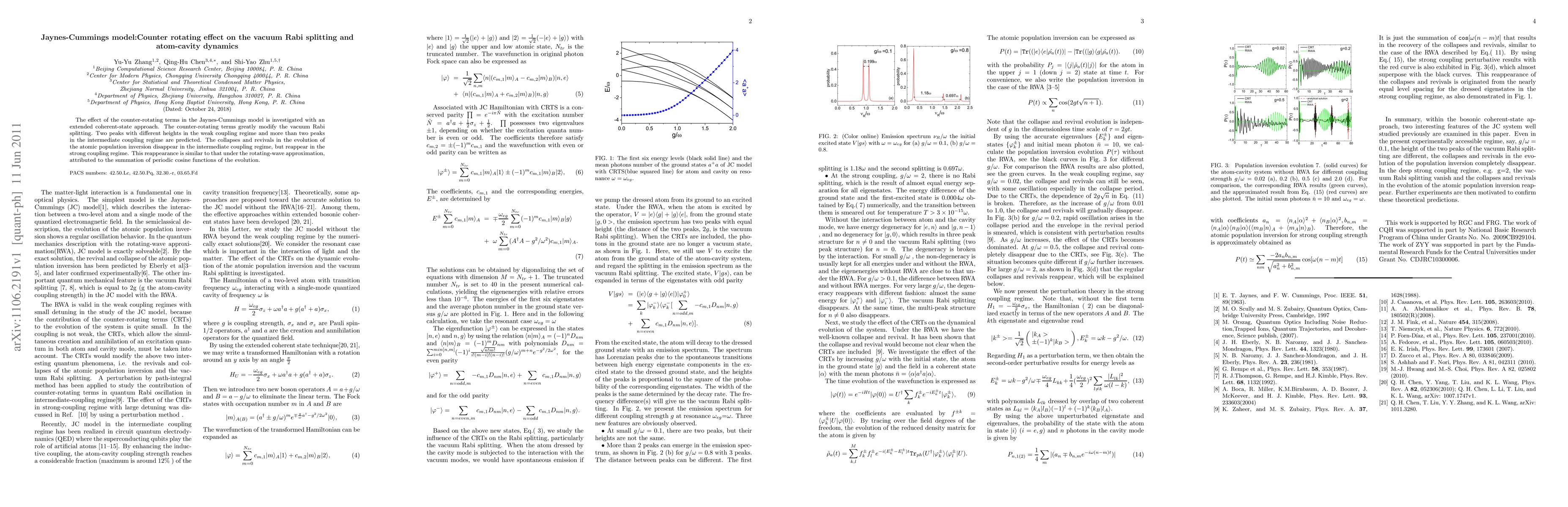 The paper investigates the impact of counter-rotating terms in the Jaynes-Cummings model, revealing significant modifications to the vacuum Rabi splitting and predicting multiple peaks in different coupling regimes. The dynamics show the disappearance of collapses and revivals in intermediate coupling but their reappearance in strong coupling, similar to the rotating-wave approximation.