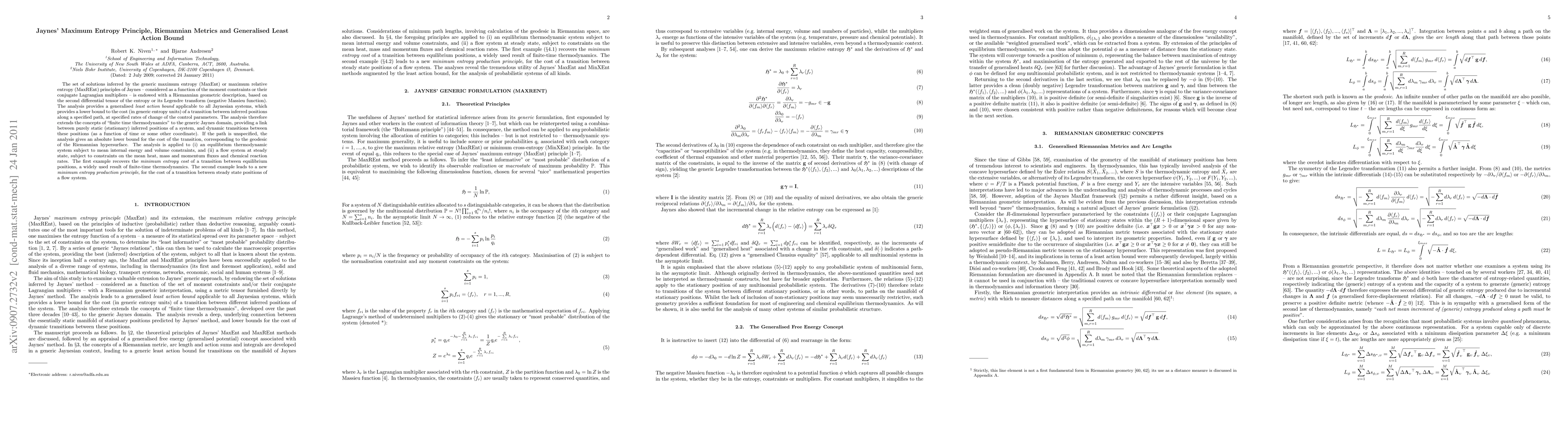 The set of solutions inferred by the generic maximum entropy (MaxEnt) or maximum relative entropy (MaxREnt) principles of Jaynes - considered as a function of the moment constraints or their conjugate Lagrangian multipliers - is endowed with a Riemannian geometric description, based on the second differential tensor of the entropy or its Legendre transform (negative Massieu function). The analysis provides a generalised {\it least action bound} applicable to all Jaynesian systems, which provides a lower bound to the cost (in generic entropy units) of a transition between inferred positions along a specified path, at specified rates of change of the control parameters. The analysis therefore extends the concepts of "finite time thermodynamics" to the generic Jaynes domain, providing a link between purely static (stationary) inferred positions of a system, and dynamic transitions between these positions (as a function of time or some other coordinate). If the path is unspecified, the analysis gives an absolute lower bound for the cost of the transition, corresponding to the geodesic of the Riemannian hypersurface. The analysis is applied to (i) an equilibrium thermodynamic system subject to mean internal energy and volume constraints, and (ii) a flow system at steady state, subject to constraints on the mean heat, mass and momentum fluxes and chemical reaction rates. The first example recovers the {\it minimum entropy cost} of a transition between equilibrium positions, a widely used result of finite-time thermodynamics. The second example leads to a new {\it minimum entropy production principle}, for the cost of a transition between steady state positions of a flow system.
