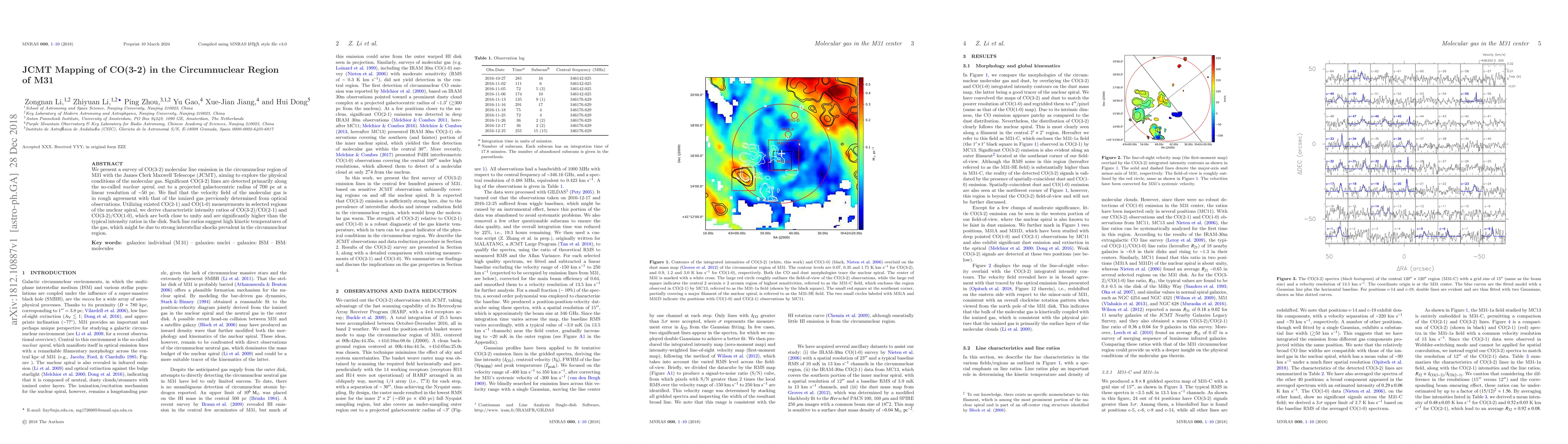 This study uses the James Clerk Maxwell Telescope to detect CO(3-2) emission in M31's circumnuclear region, revealing high kinetic temperatures due to interstellar shocks.