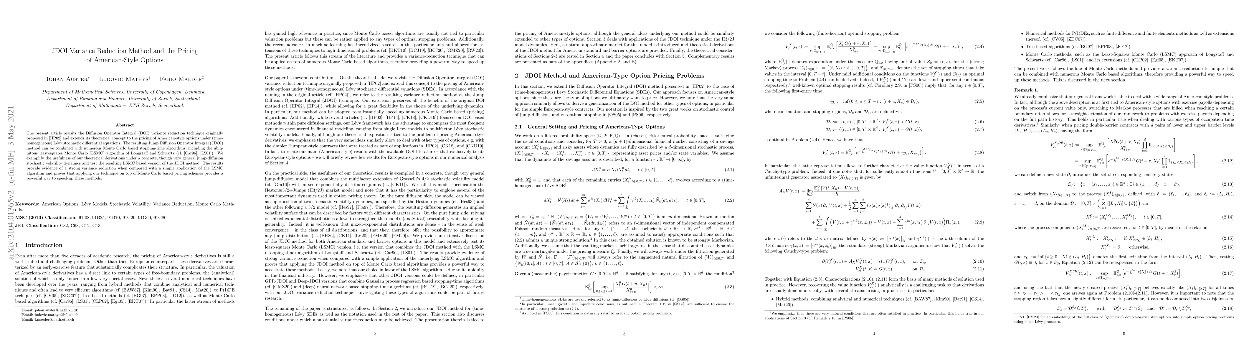 The present article revisits the Diffusion Operator Integral (DOI) variance reduction technique originally proposed in Heath and Platen (2002) and extends its theoretical concept to the pricing of American-style options under (time-homogeneous) L\'evy stochastic differential equations. The resulting Jump Diffusion Operator Integral (JDOI) method can be combined with numerous Monte Carlo based stopping-time algorithms, including the ubiquitous least-squares Monte Carlo (LSMC) algorithm of Longstaff and Schwartz (cf. Carriere (1996), Longstaff and Schwartz (2001)). We exemplify the usefulness of our theoretical derivations under a concrete, though very general jump-diffusion stochastic volatility dynamics and test the resulting LSMC based version of the JDOI method. The results provide evidence of a strong variance reduction when compared with a simple application of the LSMC algorithm and proves that applying our technique on top of Monte Carlo based pricing schemes provides a powerful way to speed-up these methods.