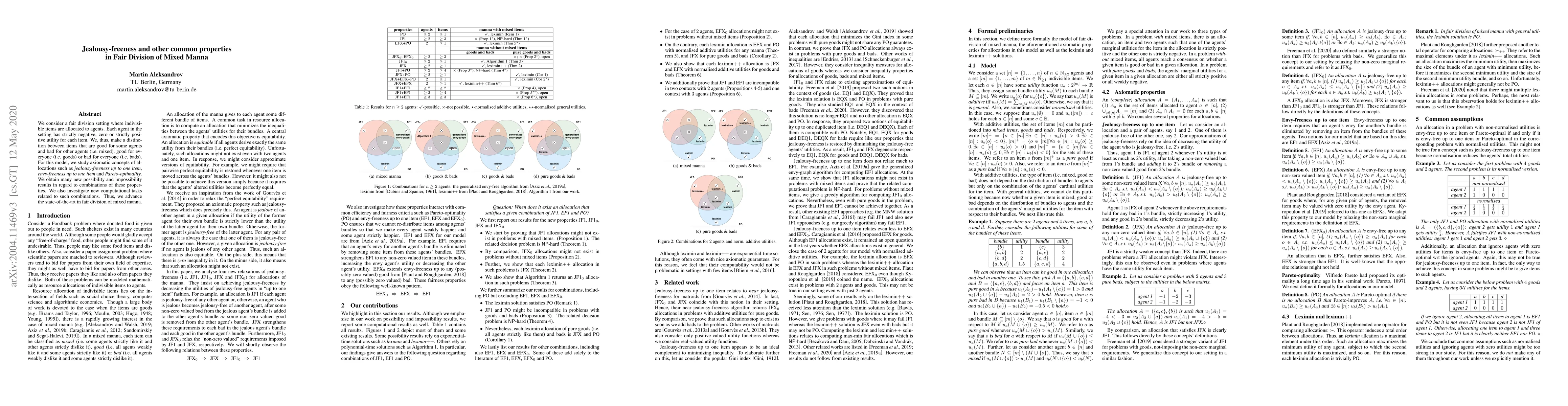 This paper explores fair division of mixed manna, where items can be good or bad for different agents, and investigates axiomatic properties like jealousy-freeness, envy-freeness, and Pareto-optimality. It presents new results on the feasibility of achieving these properties together and introduces computational tasks related to fair allocation.