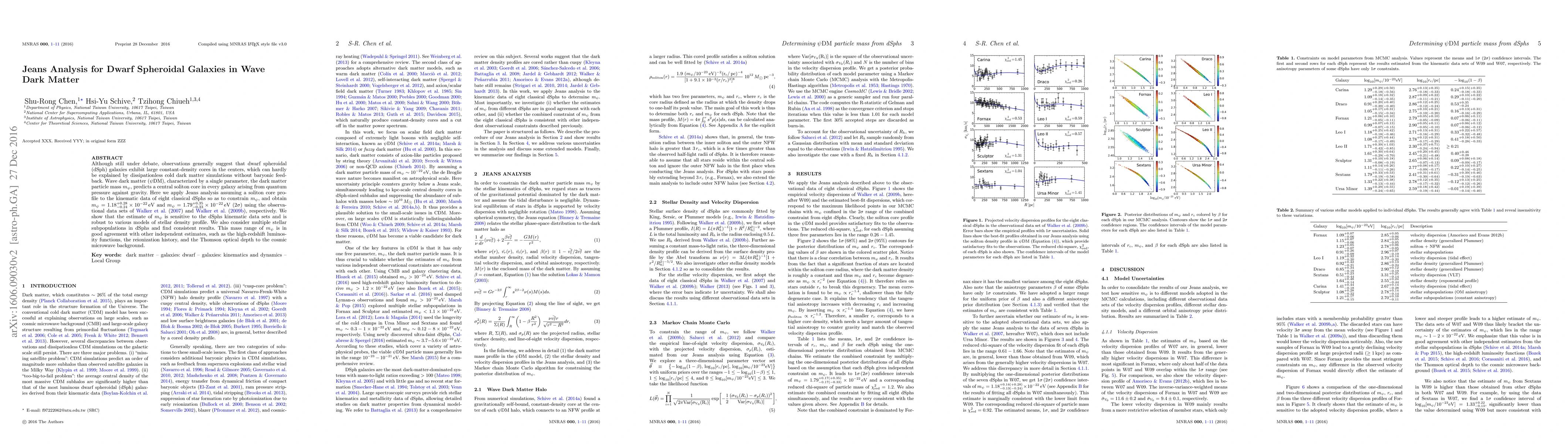 This paper uses Jeans analysis to investigate the dark matter particle mass $m_{\psi}$ in wave dark matter models for eight dwarf spheroidal galaxies, finding $m_{\psi}$ in the range of $1.18 \times 10^{-22}$ to $1.79 \times 10^{-22}$ eV. The results are consistent across different kinematic data sets and stellar density profiles, aligning well with independent cosmological estimates.