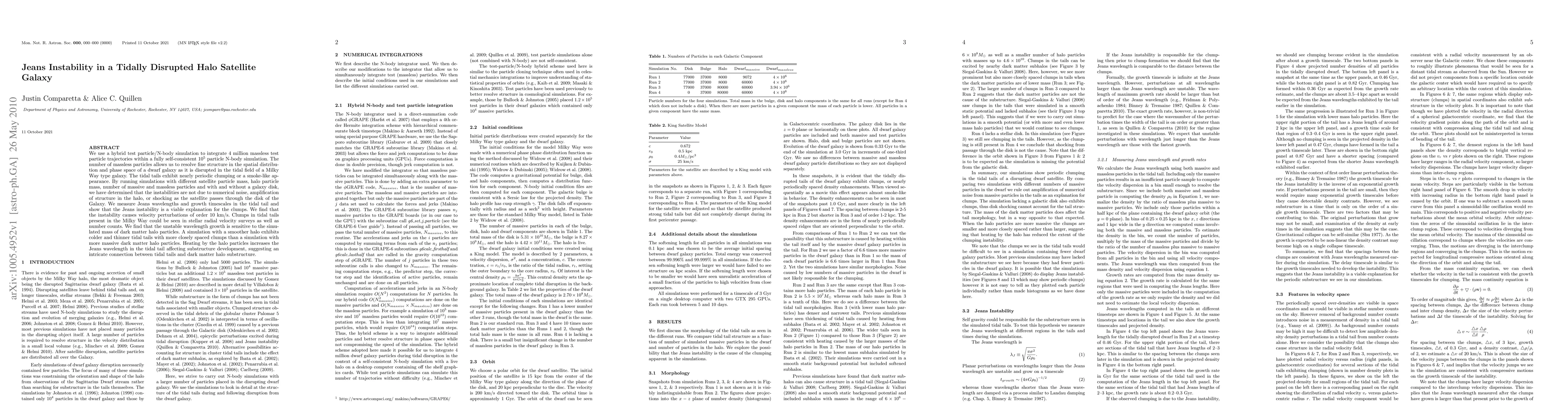 We use a hybrid test particle/N-body simulation to integrate 4 million massless test particle trajectories within a fully self-consistent 10^5 particle N-body simulation. The number of massless particles allows us to resolve fine structure in the spatial distribution and phase space of a dwarf galaxy as it is disrupted in the tidal field of a Milky Way type galaxy. The tidal tails exhibit nearly periodic clumping or a smoke-like appearance. By running simulations with different satellite particle mass, halo particle mass, number of massive and massless particles and with and without a galaxy disk, we have determined that the instabilities are not due to numerical noise, amplification of structure in the halo, or shocking as the satellite passes through the disk of the Galaxy. We measure Jeans wavelengths and growth timescales in the tidal tail and show that the Jeans instability is a viable explanation for the clumps. We find that the instability causes velocity perturbations of order 10 km/s. Clumps in tidal tails present in the Milky Way could be seen in stellar radial velocity surveys as well as number counts. We find that the unstable wavelength growth is sensitive to the simulated mass of dark matter halo particles. A simulation with a smoother halo exhibits colder and thinner tidal tails with more closely spaced clumps than a simulation with more massive dark matter halo particles. Heating by the halo particles increases the Jeans wavelength in the tidal tail affecting substructure development, suggesting an intricate connection between tidal tails and dark matter halo substructure.