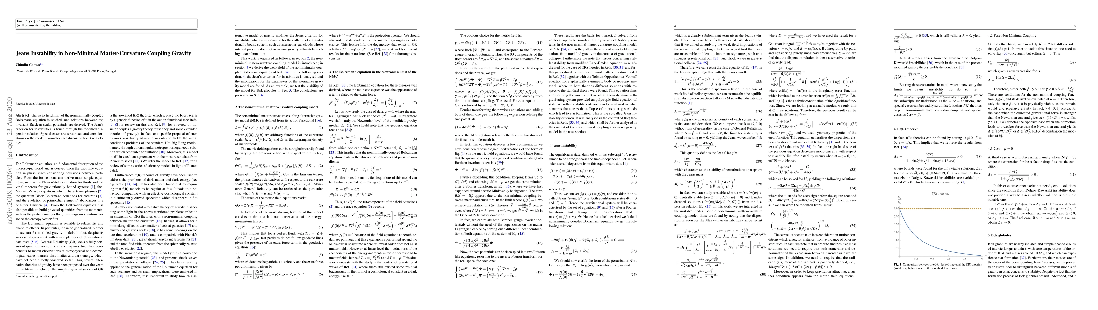 The weak field limit of the nonminimally coupled Boltzmann equation is studied, and relations between the invariant Bardeen scalar potentials are derived. The Jean's criterion for instabilities is found through the modified dispersion relation. Special cases are scrutinised and considerations on the model parameters are discussed for Bok globules.