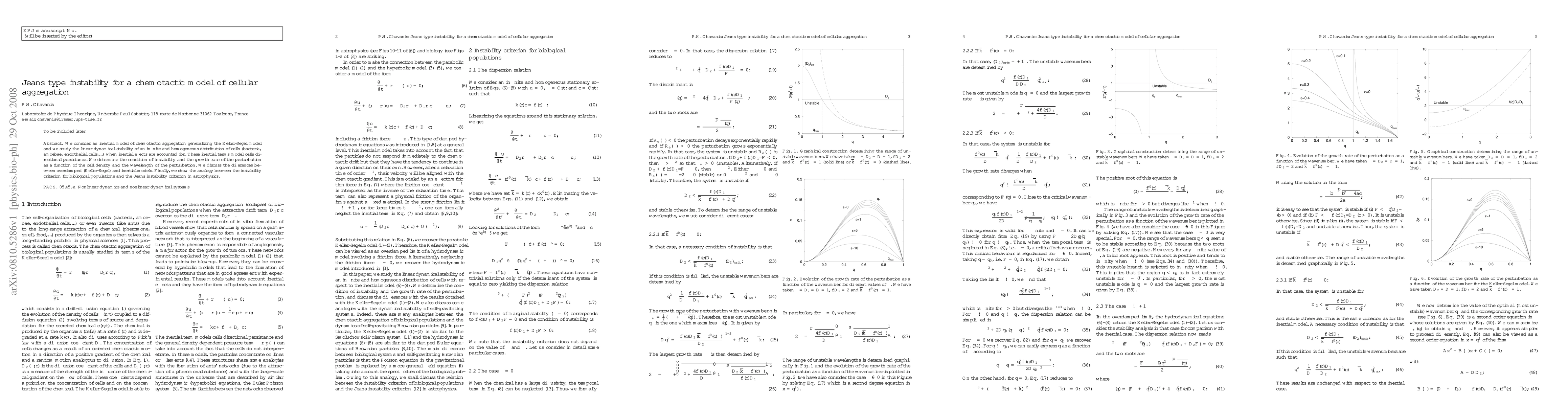The paper presents a detailed mathematical analysis of an inertial chemotactic model, deriving conditions for instability and growth rates, and draws an analogy with the Jeans instability criterion in astrophysics.