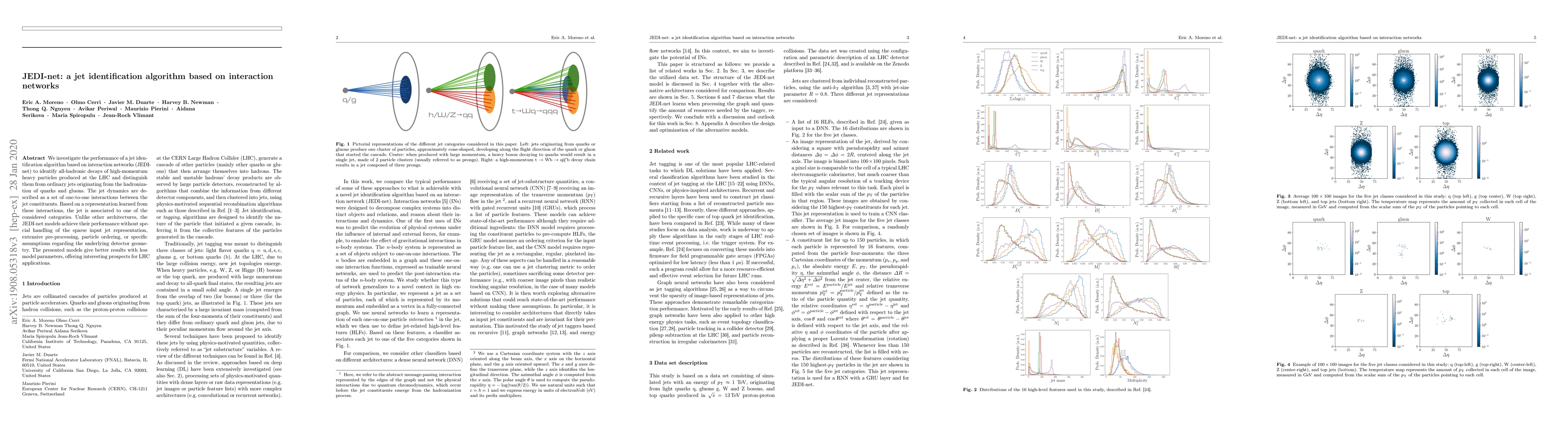 JEDI-net is a jet identification algorithm based on interaction networks that effectively distinguishes high-momentum heavy particle decays from ordinary jets without requiring extensive pre-processing or specific detector assumptions, achieving better results with fewer model parameters.