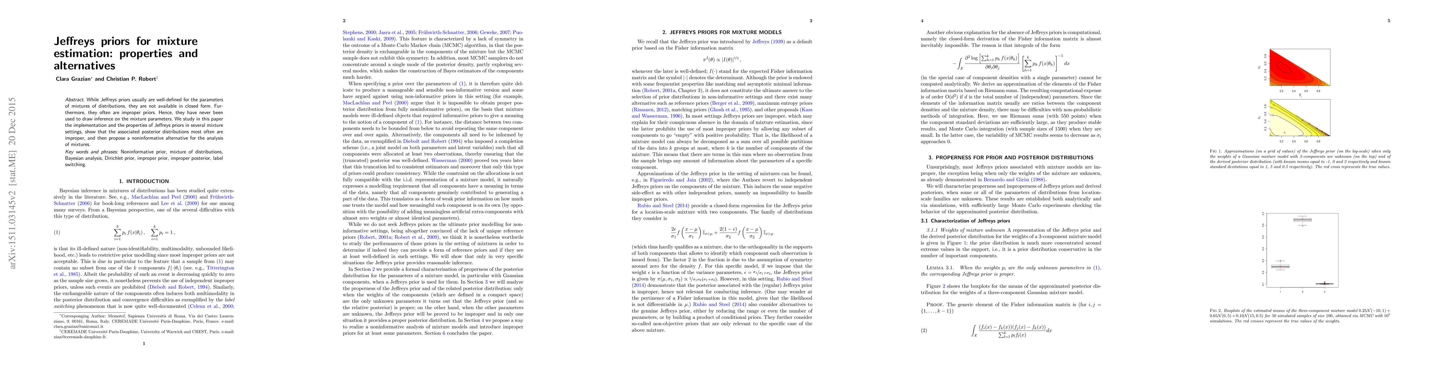 The paper studies Jeffreys priors for mixture estimation, analyzing their implementation and properties in various mixture settings. It demonstrates that these priors are often improper and proposes a noninformative alternative for mixture parameter analysis.