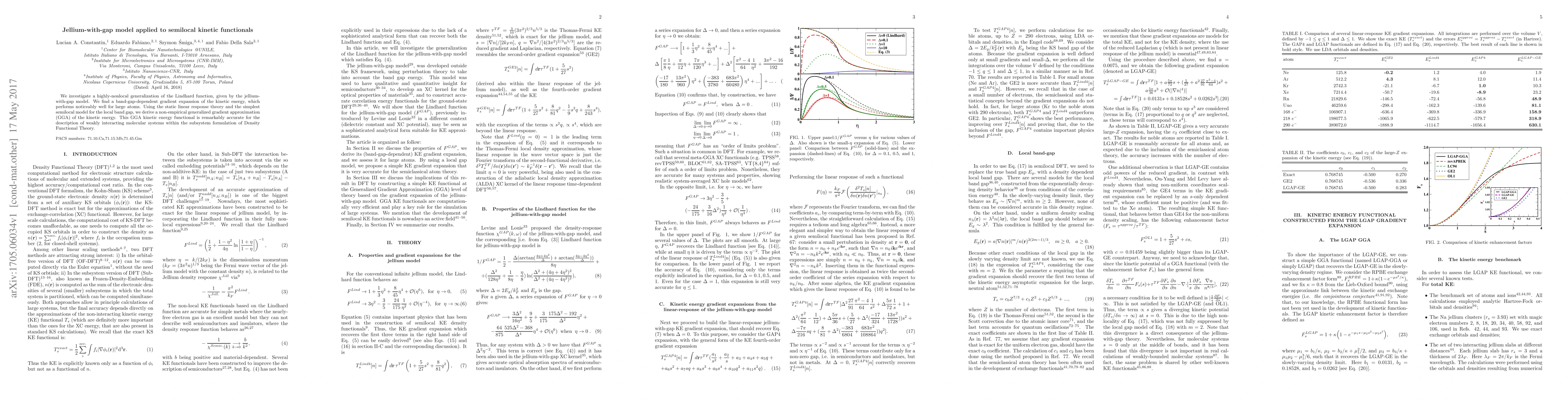We investigate a highly-nonlocal generalization of the Lindhard function, given by the jellium-with-gap model. We find a band-gap-dependent gradient expansion of the kinetic energy, which performs noticeably well for large atoms. Using the static linear response theory and the simplest semilocal model for the local band gap, we derive a non-empirical generalized gradient approximation (GGA) of the kinetic energy. This GGA kinetic energy functional is remarkably accurate for the description of weakly interacting molecular systems within the subsystem formulation of Density Functional Theory.