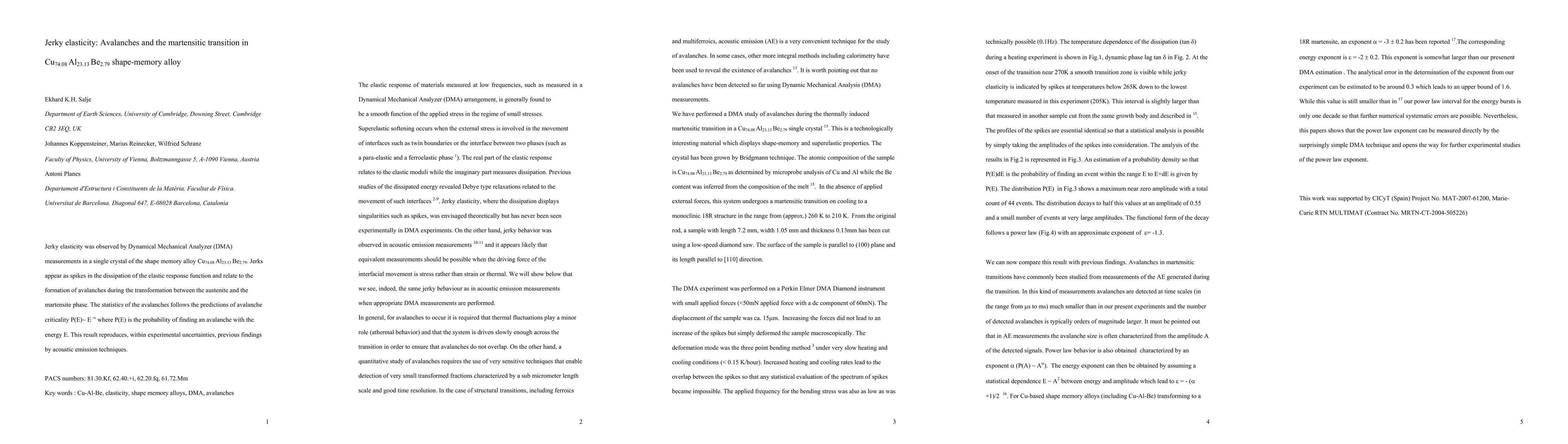 Researchers observed jerky elasticity in a shape-memory alloy, finding that avalanches during phase transformations follow criticality predictions, reproducing previous findings with experimental uncertainties.