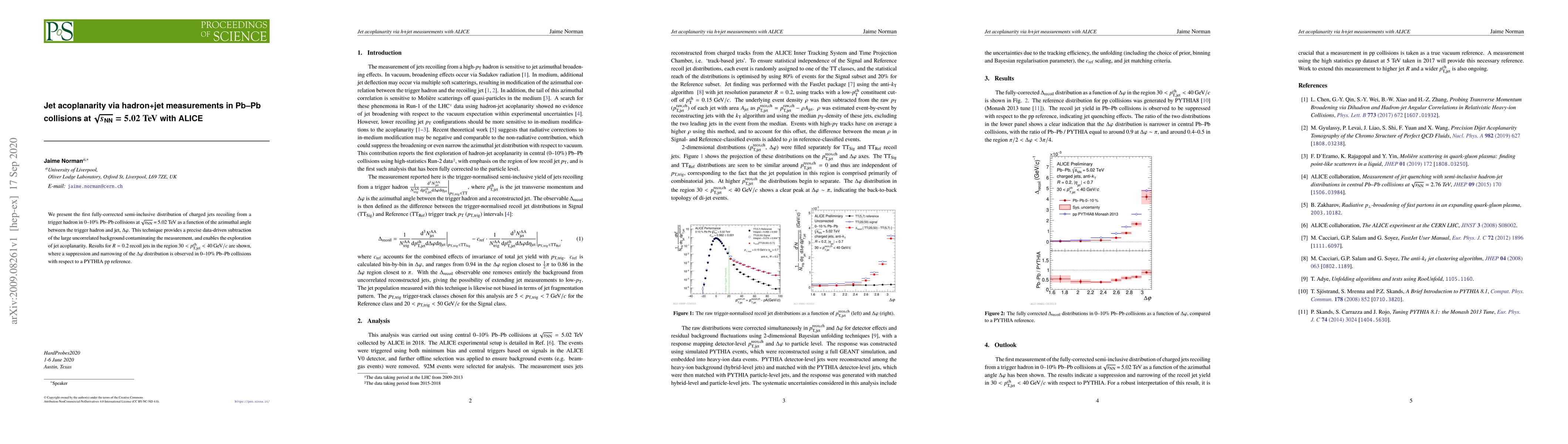This paper reports the first fully-corrected semi-inclusive distribution of charged jets in Pb-Pb collisions at 5.02 TeV, revealing jet acoplanarity via measurements of hadron+jet events. The results show suppression and narrowing of the azimuthal angle distribution between trigger hadrons and recoil jets compared to a PYTHIA pp reference.