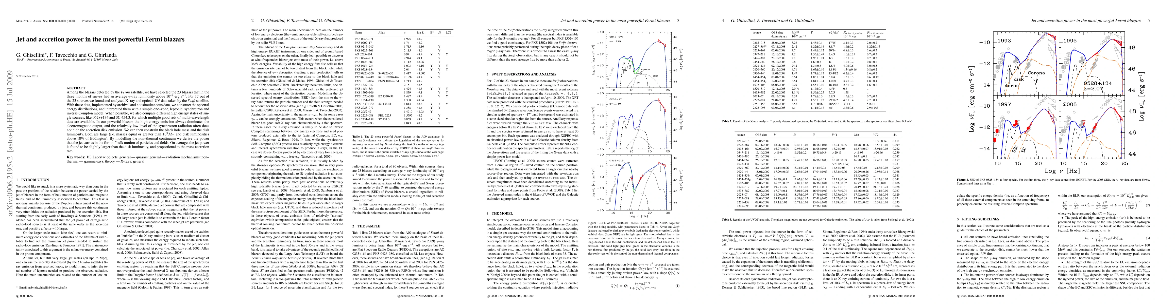 This research investigates the most powerful Fermi blazars, finding that high-energy emission dominates their electromagnetic output. The study uses Swift satellite data to construct spectral energy distributions, revealing large black hole masses and accretion disk luminosities, often exceeding 0.1 Eddington. The jet power is found to be slightly greater than the disk luminosity and proportional to the mass accretion rate.