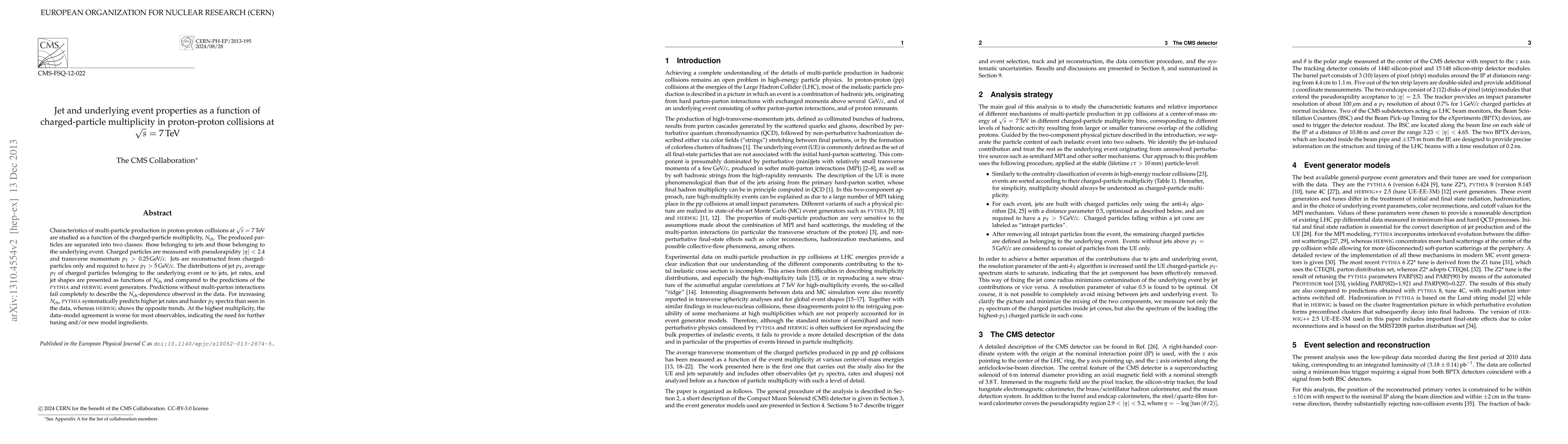 This study investigates the properties of jets and underlying events in proton-proton collisions at 7 TeV as a function of charged-particle multiplicity. The analysis reveals discrepancies between experimental data and predictions from PYTHIA and HERWIG, indicating the need for model refinements to better describe high multiplicity events.