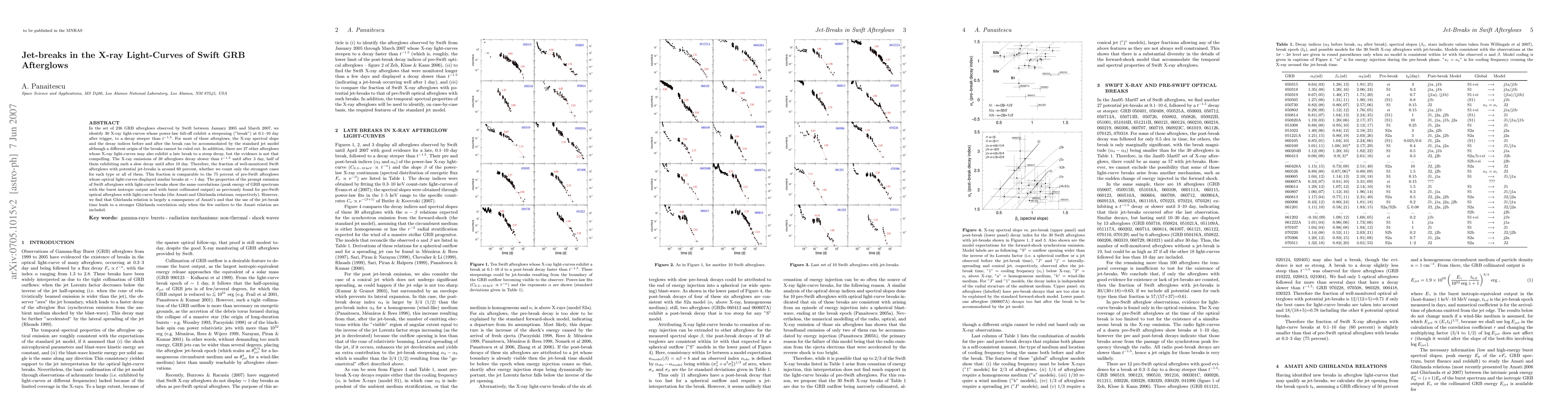 This research identifies jet-breaks in the X-ray light-curves of 30 out of 236 Swift GRB afterglows, suggesting a steepening decay post-break. The jet model explains these breaks, though alternative origins cannot be dismissed. The study also finds 27 potentially similar breaks with less compelling evidence and notes 38 afterglows with slow X-ray decay. The findings support a 60% occurrence rate of jet-breaks in monitored Swift afterglows, similar to pre-Swift optical afterglows. The study further confirms correlations between prompt emission properties and light-curve breaks.