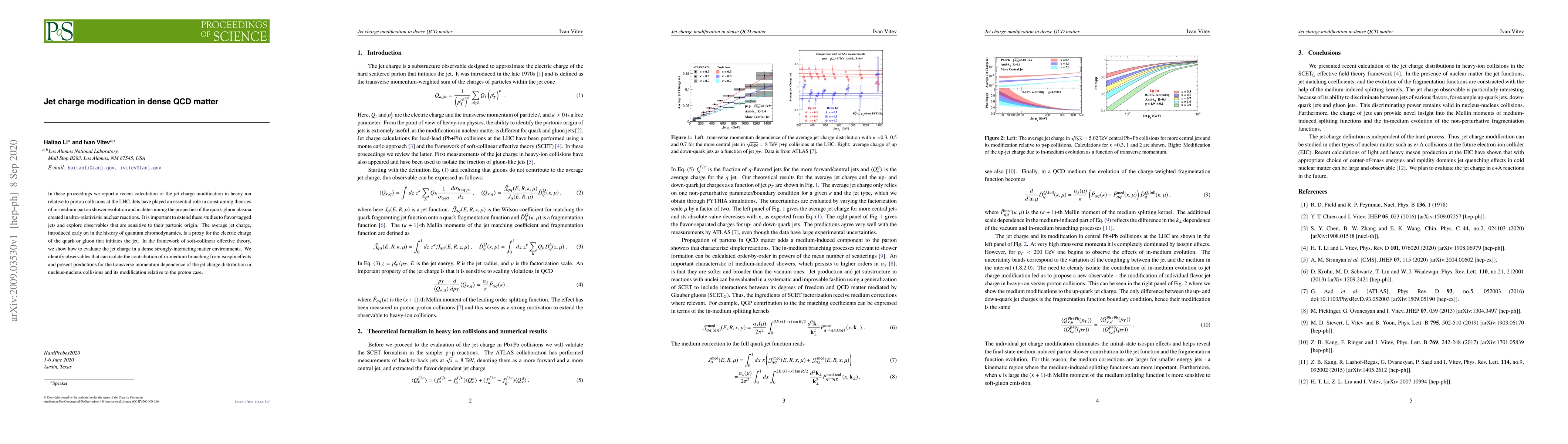 In these proceedings we report a recent calculation of the jet charge modification in heavy-ion relative to proton collisions at the LHC. Jets have played an essential role in constraining theories of in-medium parton shower evolution and in determining the properties of the quark-gluon plasma created in ultra-relativistic nuclear reactions. It is important to extend these studies to flavor-tagged jets and explore observables that are sensitive to their partonic origin. The average jet charge, introduced early on in the history of quantum chromodynamics, is a proxy for the electric charge of the quark or gluon that initiates the jet. In the framework of soft-collinear effective theory, we show how to evaluate the jet charge in a dense strongly-interacting matter environments. We identify observables that can isolate the contribution of in-medium branching from isospin effects and present predictions for the transverse momentum dependence of the jet charge distribution in nucleus-nucleus collisions and its modification relative to the proton case.