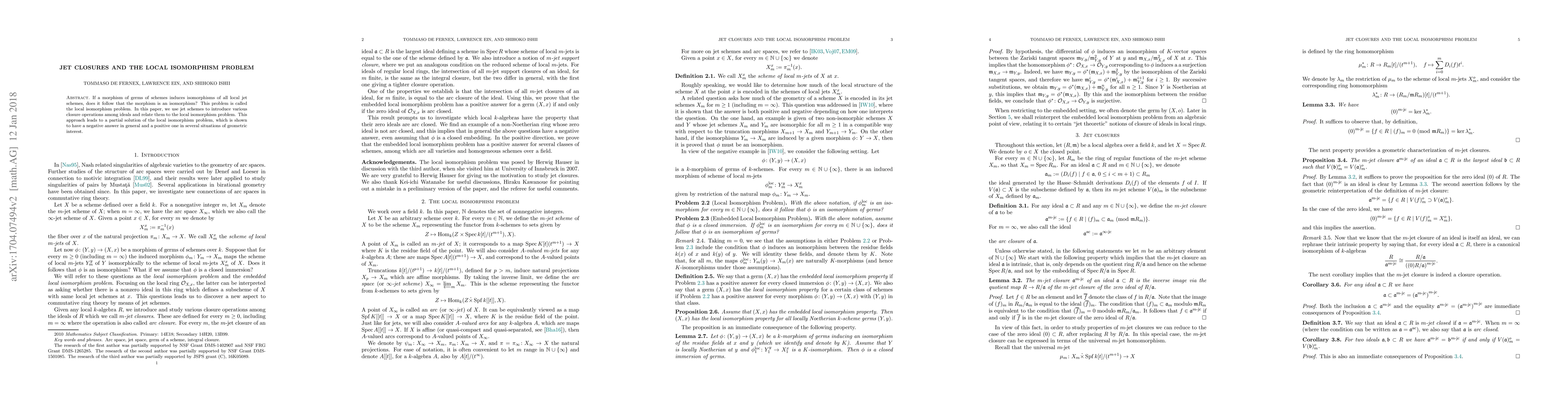 This paper explores the local isomorphism problem in algebraic geometry using jet schemes, demonstrating that while morphisms inducing isomorphisms of local jet schemes are not always isomorphisms, specific geometric contexts yield positive results. Various closure operations among ideals are introduced and analyzed in this context.
