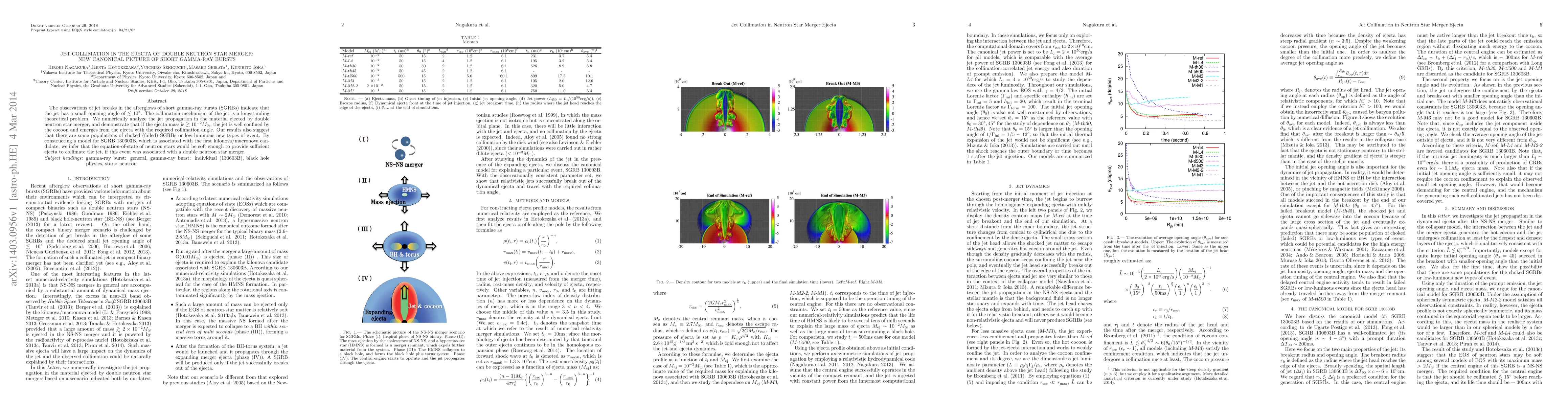 This research presents a new theoretical model for the collimation of jets in short gamma-ray bursts (SGRBs), suggesting that the ejecta from a double neutron star merger can confine and collimate the jet to the observed narrow angles. The study also implies the existence of choked SGRBs or new low-luminosity events, and uses SGRB 130603B as an example to suggest soft neutron star equations-of-state for sufficient ejecta to collimate jets.
