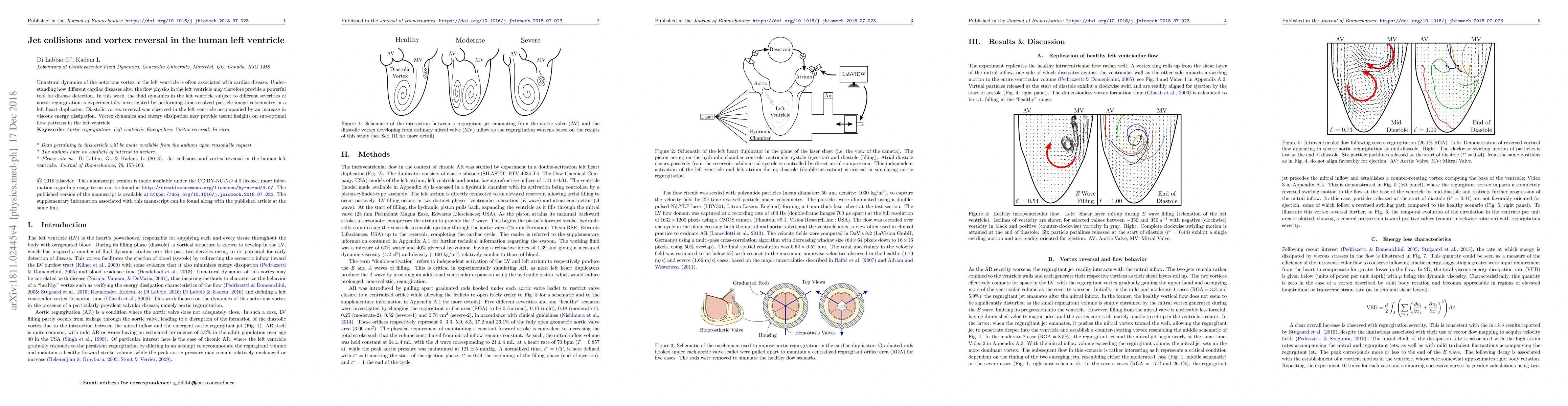 This study investigates the fluid dynamics in the left ventricle during aortic regurgitation using time-resolved particle image velocimetry, revealing diastolic vortex reversal and increased viscous energy dissipation, which may indicate sub-optimal flow patterns indicative of cardiac disease.