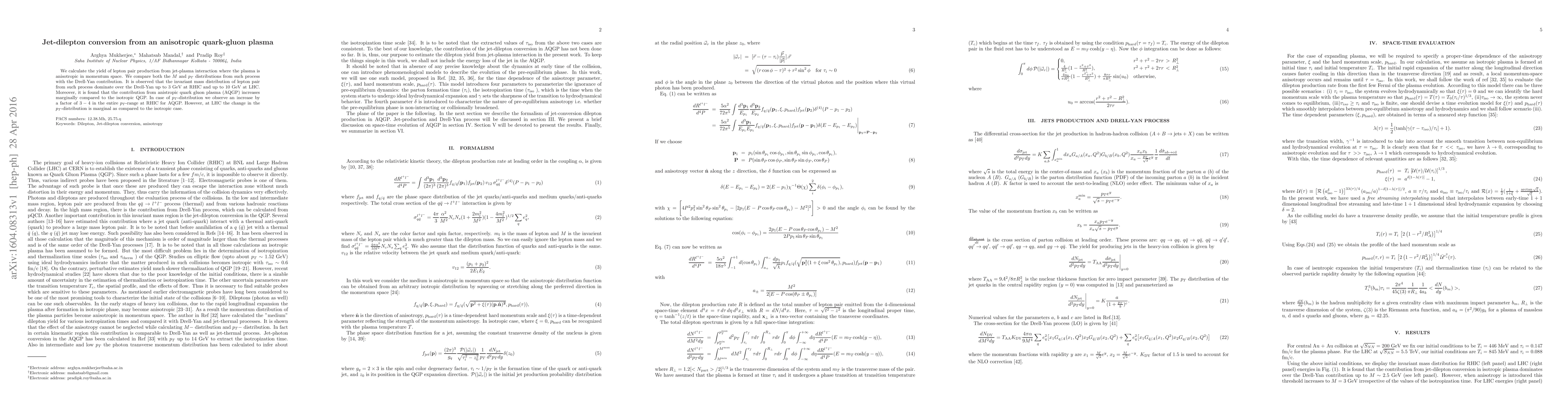 This paper investigates the lepton pair production from jet interactions with an anisotropic quark-gluon plasma, finding that its invariant mass distribution dominates over Drell-Yan processes up to 3 GeV at RHIC and 10 GeV at LHC. The anisotropic plasma's $p_T$ distribution shows a significant increase by a factor of 3-4 at RHIC, while changes at LHC are marginal.