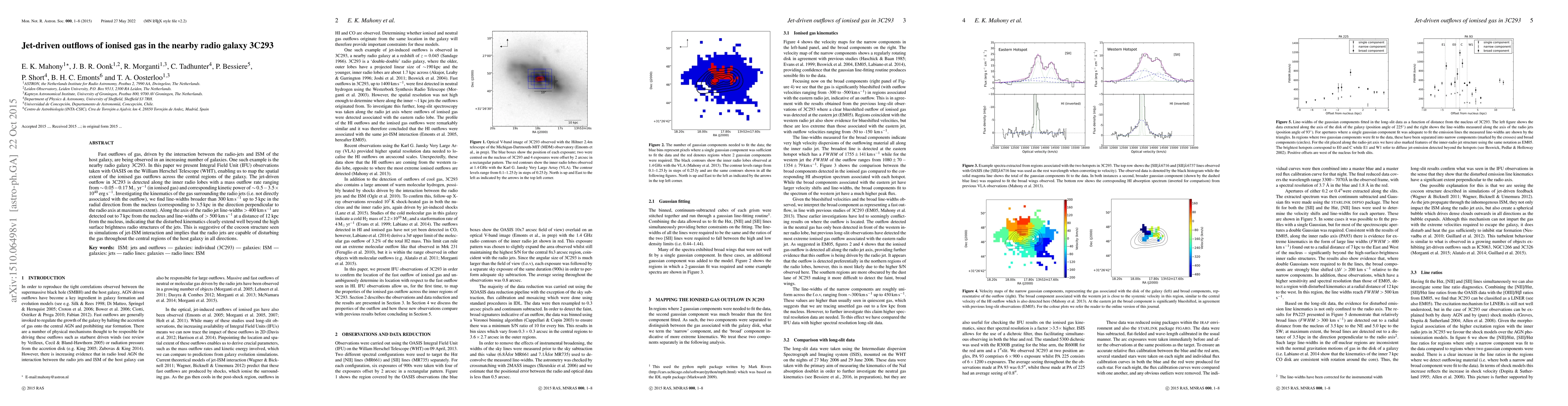 Astronomers observed a jet-driven outflow of ionized gas in the nearby radio galaxy 3C293, with a mass outflow rate ranging from 0.05-0.17 solar masses per year, using Integral Field Unit observations taken with the William Herschel Telescope.
