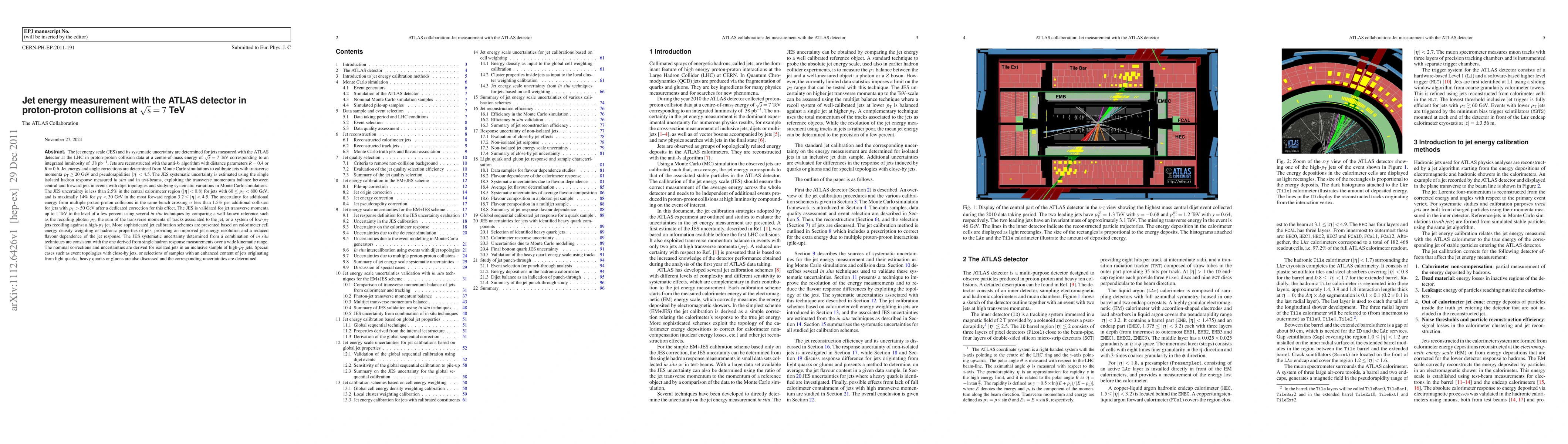 The paper details the calibration and systematic uncertainty of the jet energy scale (JES) in proton-proton collisions at 7 TeV using the ATLAS detector, achieving an uncertainty of less than 2.5% in the central region for jets with transverse momenta between 60 and 800 GeV. The JES is validated using various in situ techniques and improved calibration schemes.
