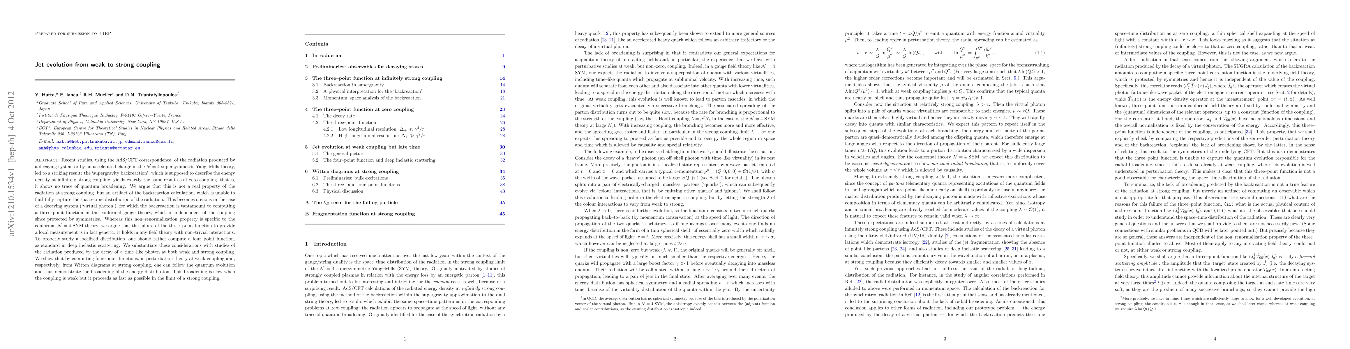 Recent studies, using the AdS/CFT correspondence, of the radiation produced by a decaying system or by an accelerated charge in the N=4 supersymmetric Yang-Mills theory, led to a striking result: the 'supergravity backreaction', which is supposed to describe the energy density at infinitely strong coupling, yields exactly the same result as at zero coupling, that is, it shows no trace of quantum broadening. We argue that this is not a real property of the radiation at strong coupling, but an artifact of the backreaction calculation, which is unable to faithfully capture the space-time distribution of the radiation. This becomes obvious in the case of a decaying system ('virtual photon'), for which the backreaction is tantamount to computing a three-point function in the conformal gauge theory, which is independent of the coupling since protected by symmetries. Whereas this non-renormalization property is specific to the conformal N=4 SYM theory, we argue that the failure of the three-point function to provide a local measurement is in fact generic: it holds in any field theory with non-trivial interactions. To properly study a localized distribution, one should rather compute a four-point function, as standard in deep inelastic scattering. We substantiate these considerations with studies of the radiation produced by the decay of a time-like photon at both weak and strong coupling. We show that by computing four-point functions, in perturbation theory at weak coupling and, respectively, from Witten diagrams at strong coupling, one can follow the quantum evolution and thus demonstrate the broadening of the energy distribution. This broadening is slow when the coupling is weak but it proceeds as fast as possible in the limit of a strong coupling.