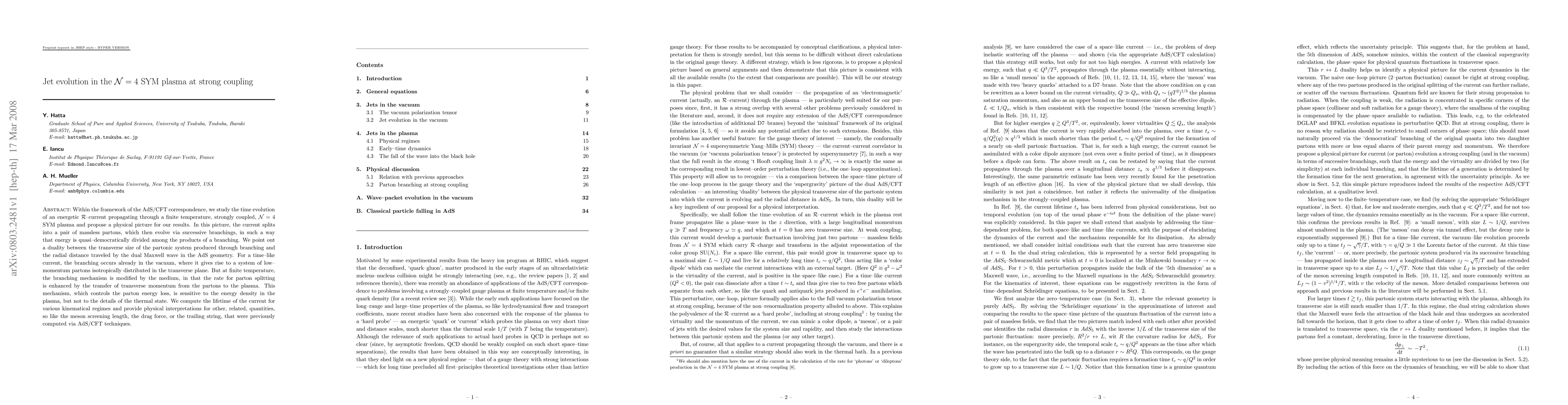 Within the framework of the AdS/CFT correspondence, we study the time evolution of an energetic R-current propagating through a finite temperature, strongly coupled, N=4 SYM plasma and propose a physical picture for our results. In this picture, the current splits into a pair of massless partons, which then evolve via successive branchings, in such a way that energy is quasi-democratically divided among the products of a branching. We point out a duality between the transverse size of the partonic system produced through branching and the radial distance traveled by the dual Maxwell wave in the AdS geometry. For a time-like current, the branching occurs already in the vacuum, where it gives rise to a system of low-momentum partons isotropically distributed in the transverse plane. But at finite temperature, the branching mechanism is modified by the medium, in that the rate for parton splitting is enhanced by the transfer of transverse momentum from the partons to the plasma. This mechanism, which controls the parton energy loss, is sensitive to the energy density in the plasma, but not to the details of the thermal state. We compute the lifetime of the current for various kinematical regimes and provide physical interpretations for other, related, quantities, so like the meson screening length, the drag force, or the trailing string, that were previously computed via AdS/CFT techniques.